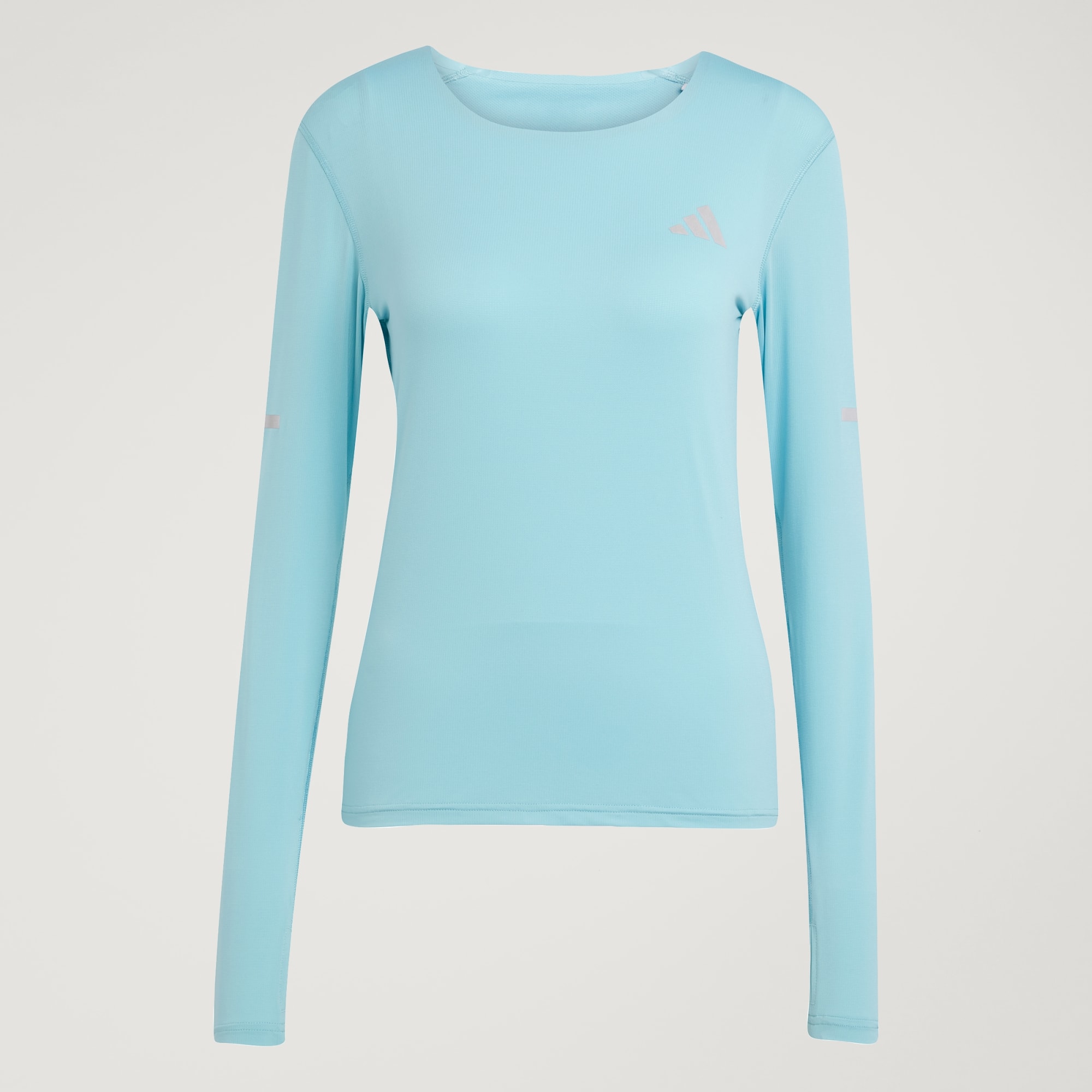 Whether it's the sun or your effort that's at peak intensity, this adidas running long sleeve helps you keep your cool. It's built with CLIMACOOL+, our best cooling innovation. Strategic mesh inserts keep air flowing to your skin. You also get 360 degrees of reflectivity, lighting up your look from any angle. CLIMACOOL+ helps you manage sweat with materials that wick and manage sweat quickly. Its fast-dry fibres give you a fresh-skin feel. Body-mapped sweat management supports targeted cooling. Superior engineering and advanced materials unite for a cool, dry and distraction free performance.