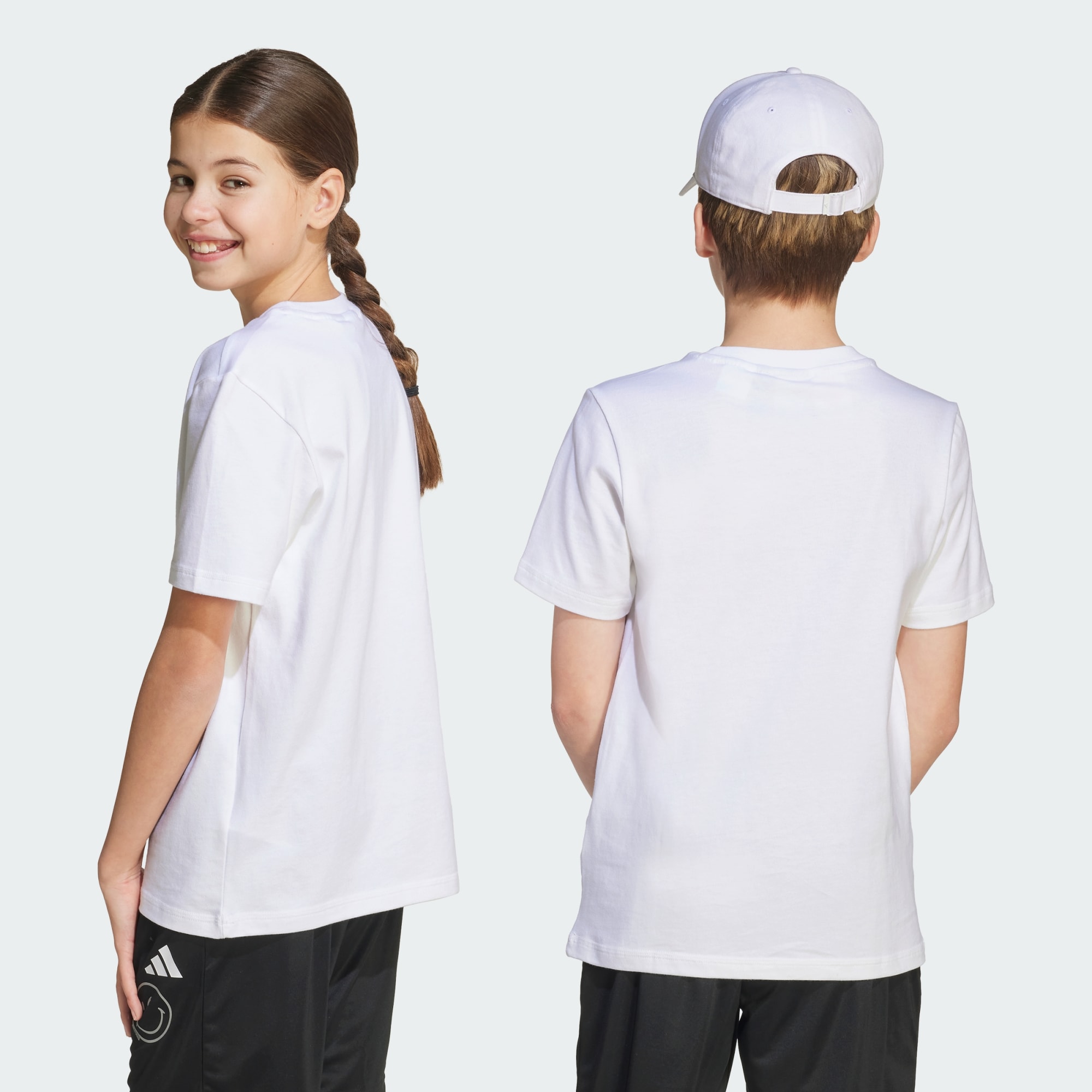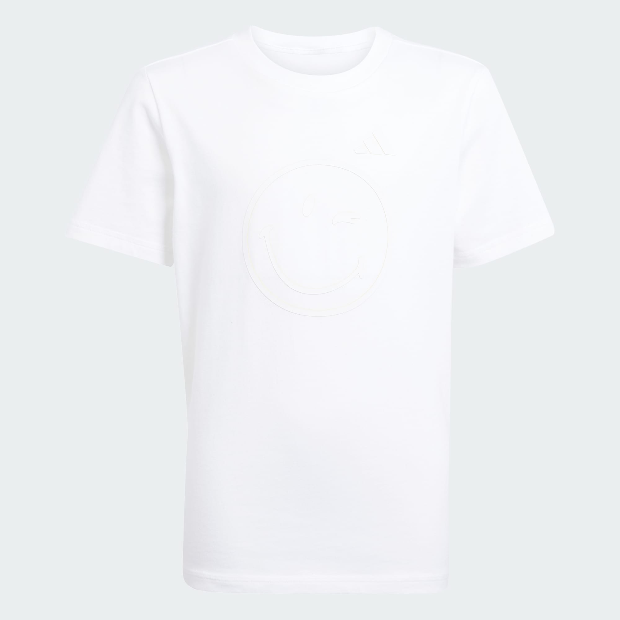 Spread good vibes in this juniors' adidas tee. Pairing the iconic adidas 3 Bar Logo with a beaming SMILEY graphic, it's a celebration of happiness. Cotton fabric keeps you comfortable all day long, so slip into this shirt and let the good times roll.