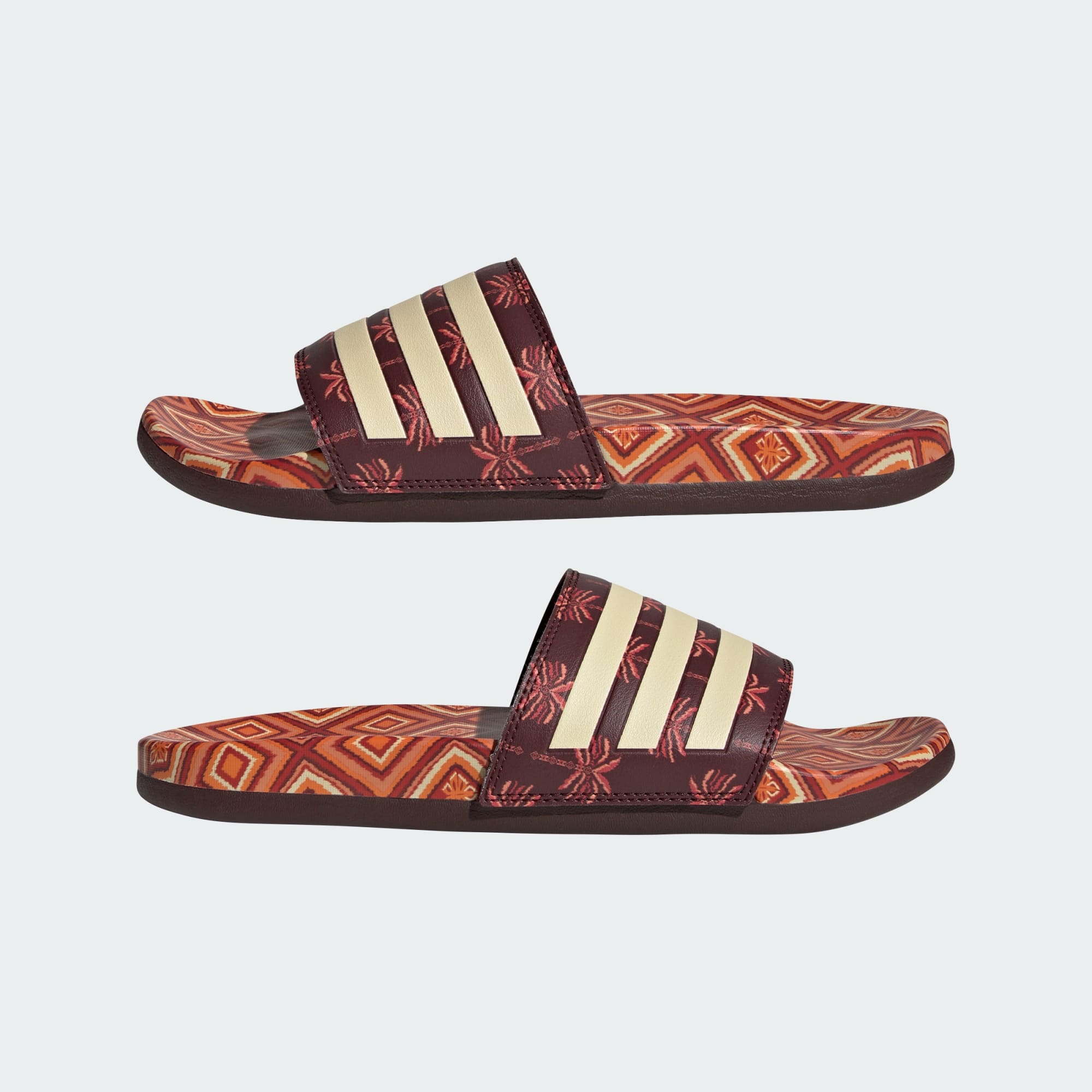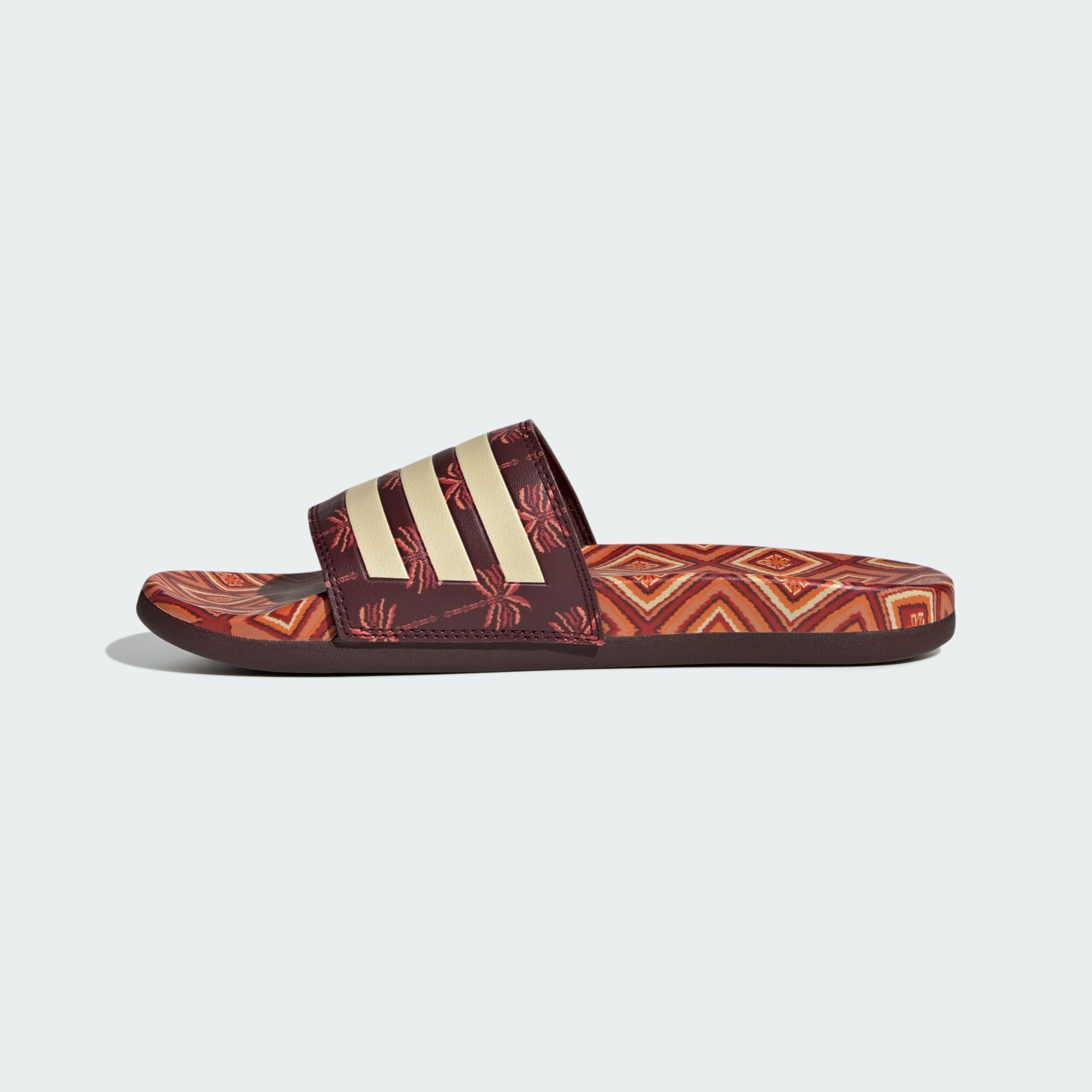 Slide feet first into comfort. Featuring colorful and vibrant prints from Brazilian label FARM Rio, these adidas slides are the epitome of versatility and laid-back vibes. A contoured footbed delivers plush cushioning for all-day comfort. The classic design features a bandage upper with 3-Stripes branding.