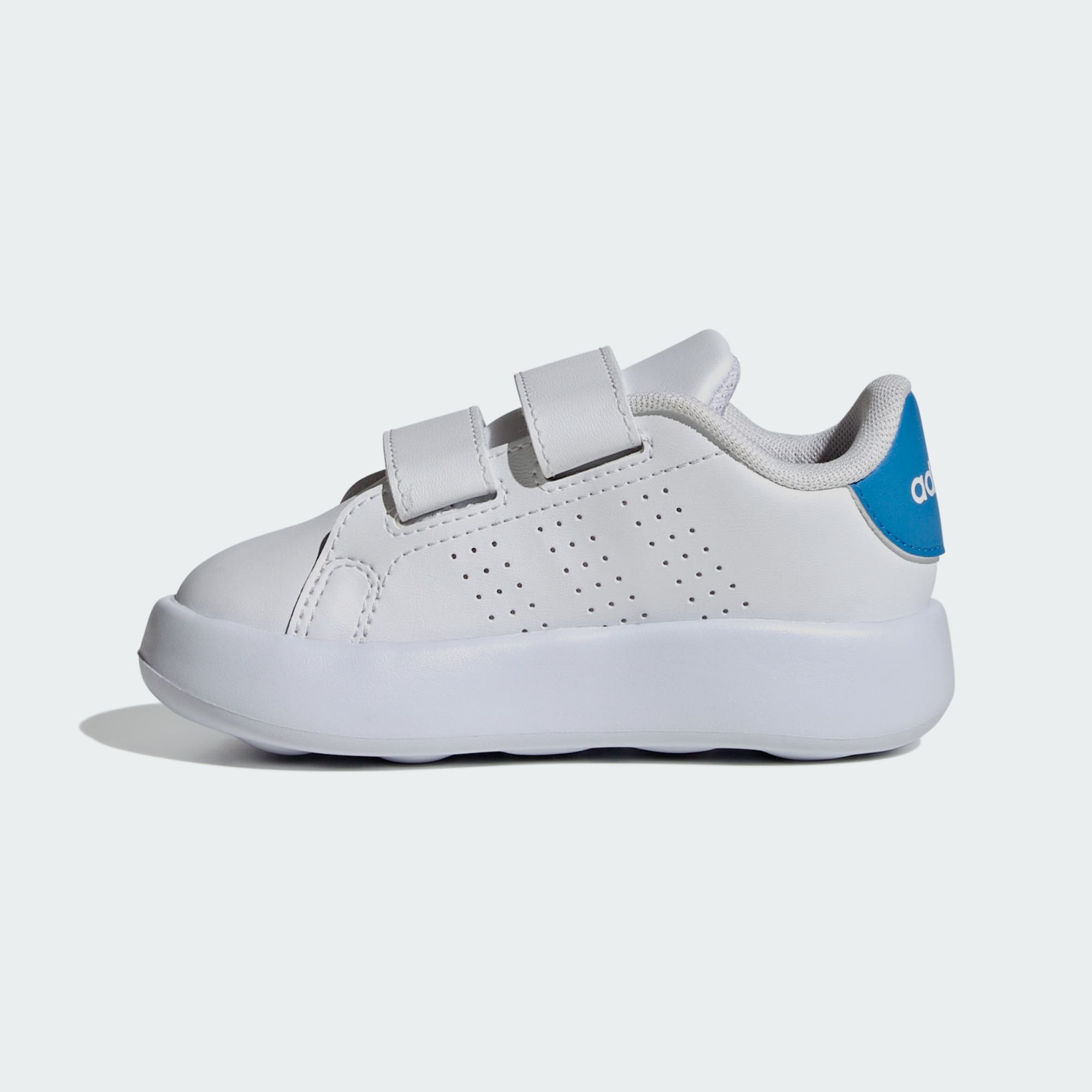 Whether it's playtime at the park or family visits, these infants' adidas Advantage shoes ensure tiny feet stay comfortable all day. The hook-and-loop straps make slipping these lightweight shoes on and off a breeze for both little ones and parents. A one-piece EVA combined bubble midsole and outsole cushions each step, while the recycled synthetic upper adds durability and style. This product features at least 20% recycled materials. By reusing materials that have already been created, we help to reduce waste and our reliance on finite resources and reduce the footprint of the products we make.
