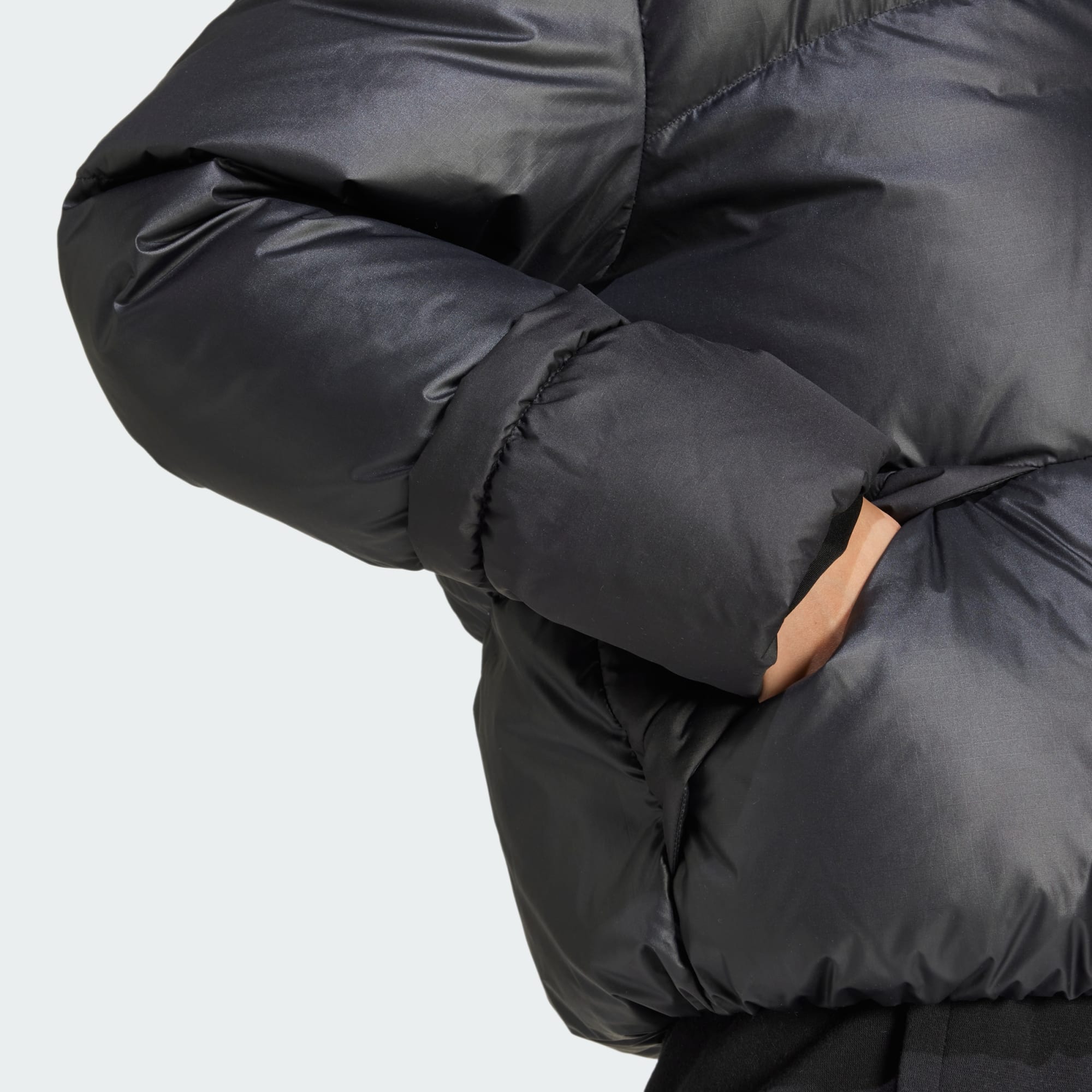 When winter shows up, give it a warm welcome in this adidas down jacket. A generous blend of 500-fill down in oversize baffles keeps you cosy on the coldest days, while a water-repellent finish keeps you on the go in damp weather. Tuck your hands in the lined pockets and keep your fingers toasty warm.This product is made with at least 70% recycled materials. By reusing materials that have already been created, we help to reduce waste and our reliance on finite resources and reduce the footprint of the products we make.