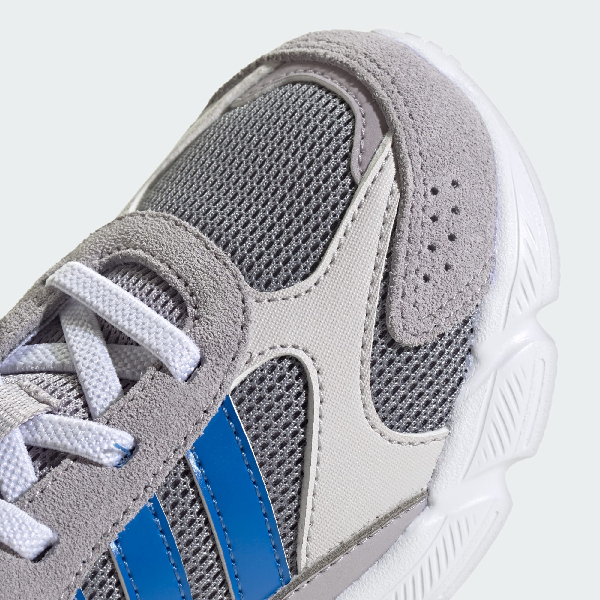 Mesh and suede come together in a stylish combination on these kids' adidas Crazychaos 2000 shoes. Inspired by a retro runner, this pair has a sporty look and comfy Cloudfoam midsole. Elastic laces make them easy to put on before a day of adventures. Ready to run, explore and everything in between, these shoes keep up with busy kids.