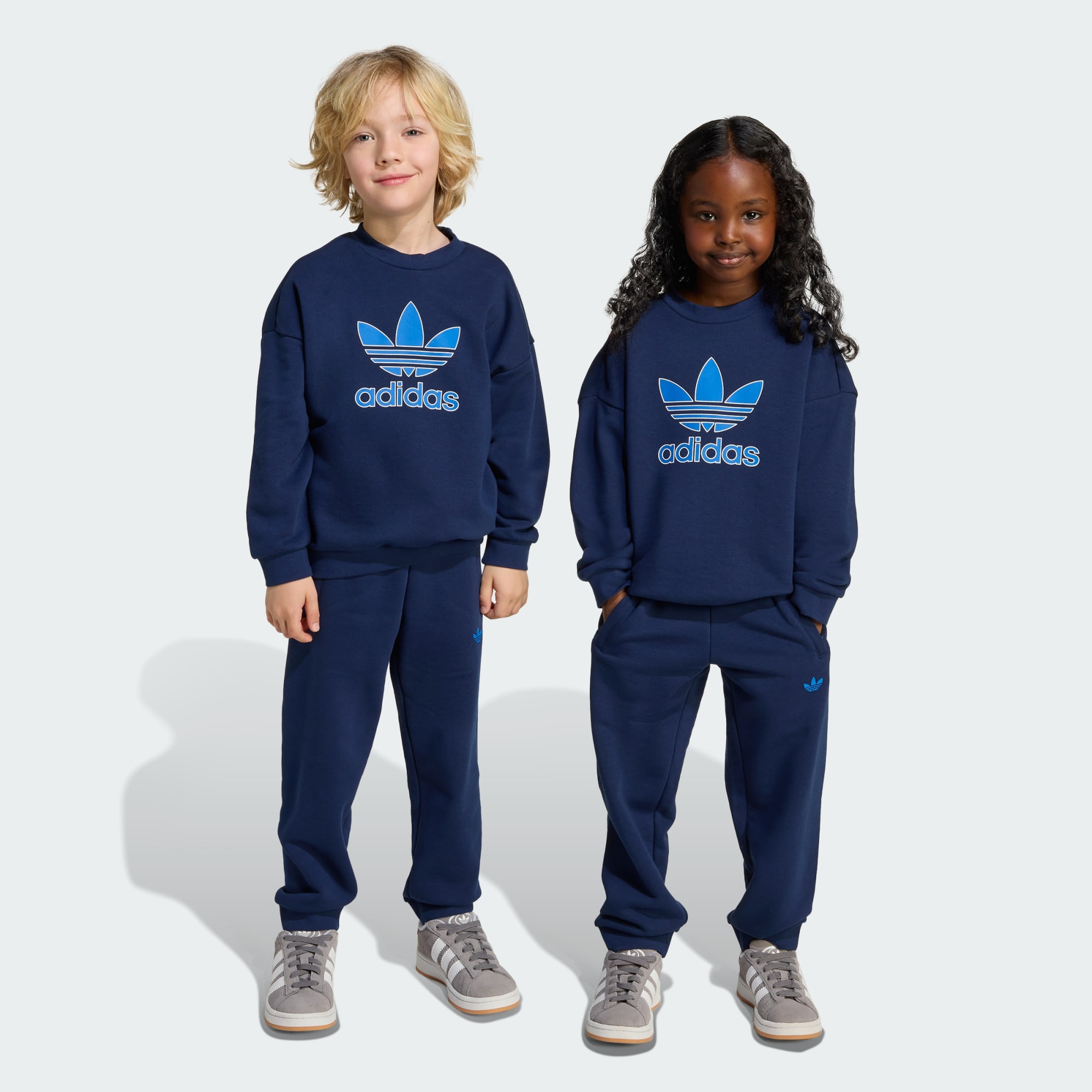 This crew set from adidas lets kids express their creative flair. Inspired by '90s street style, the loose shape and bold Trefoil logos give any outfit an instant edge. Soft French terry fabric keeps them comfortable, whether they're adventuring in the great outdoors or getting lost in their favourite book. Whether worn as a set or mixed and matched with other pieces, this is how kids do casual.