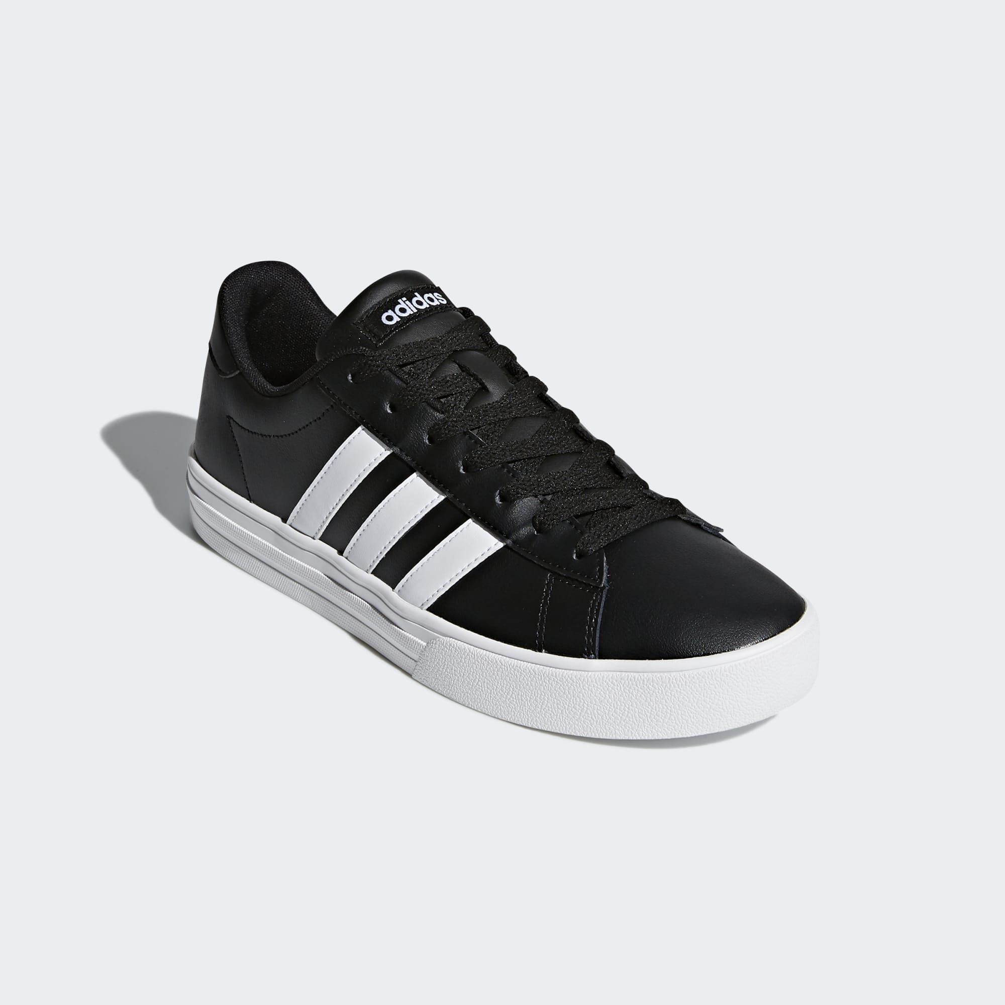 The definitive daily trainer. This classic court shoe is reworked with a modern shape and fresh materials. The durable leather upper is topped with contrasting 3-Stripes for go-with-anything ease. A vulc-look outsole completes the package.