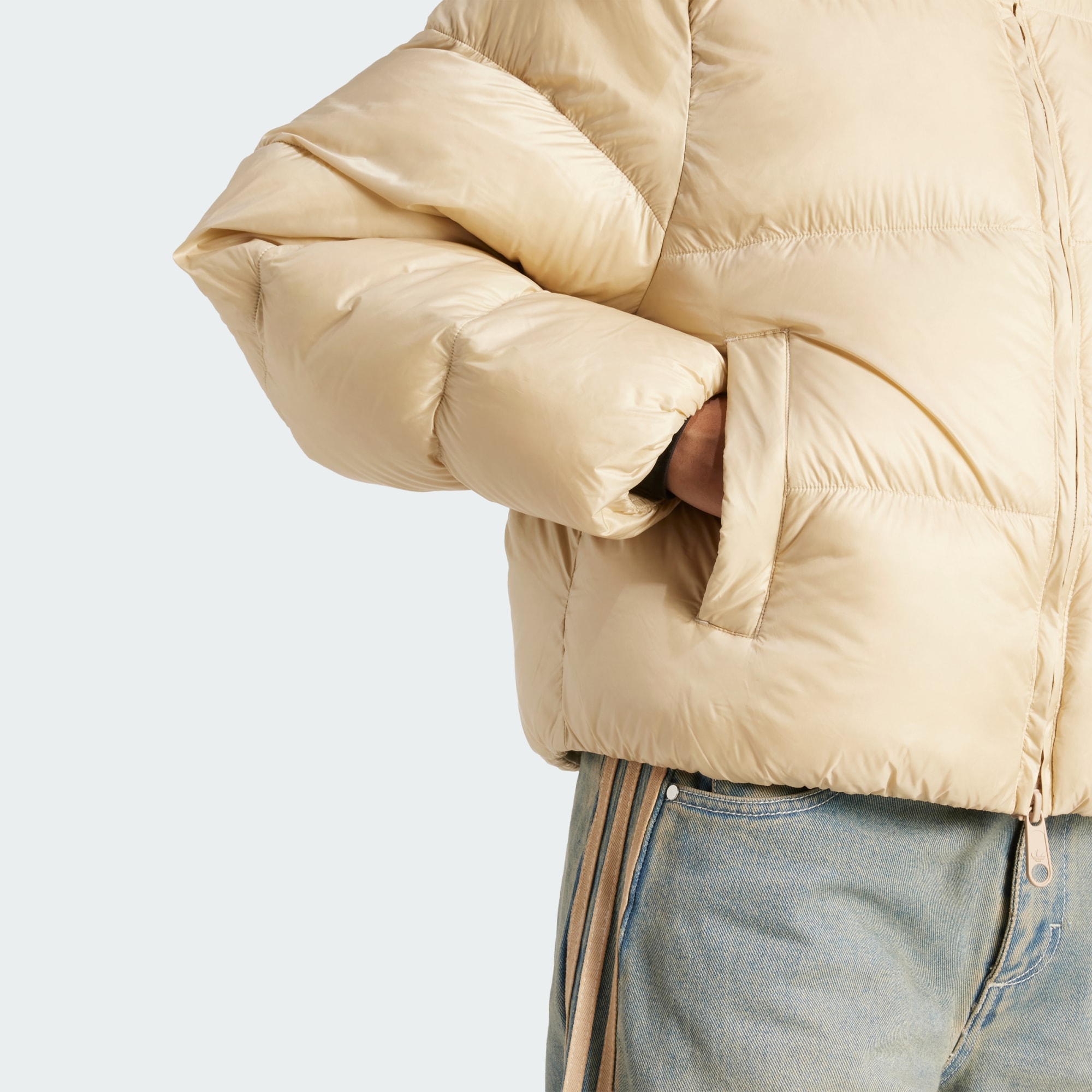 On cold, blustery days, this adidas down puffer coat is your go-to. Filled with lightweight duck down, it keeps you cosy without the bulk. The loose shape and woven nylon shell have a sleek, casual look that layers well over everything from workout clothes to jeans and a sweater. Zip pockets safely stow essentials as you head out into the chill.