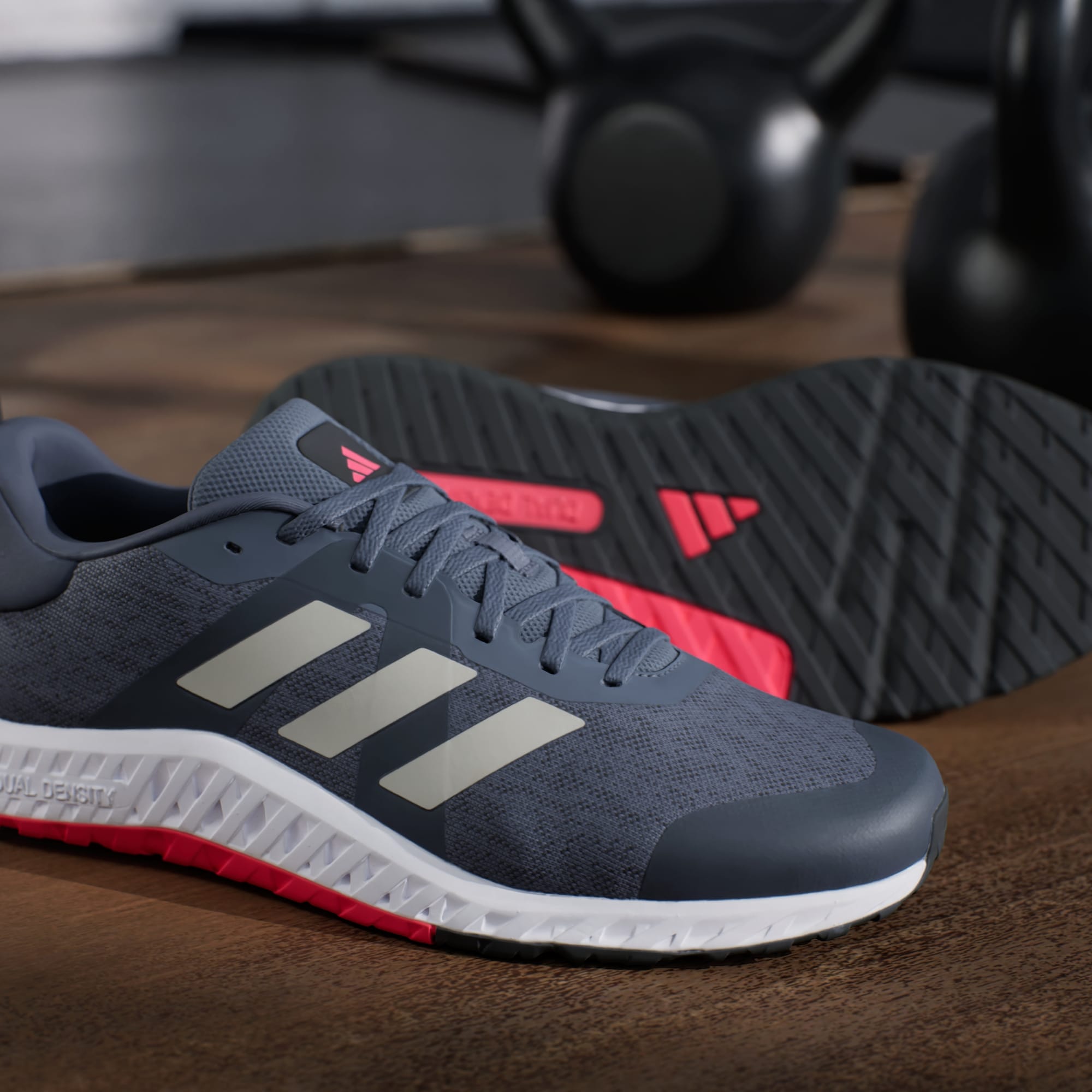 Training is a journey. No matter where you are on yours, lace up these adidas shoes and get to it. The knit upper is soft and breathable with a snug feel. A dual-density midsole, with firmer EVA outside surrounding softer EVA inside, adds stability without sacrificing comfort. The overall shape creates a stable and grounded feeling, so you can focus on your form. Shift your weight whenever you need to — the multidirectional rubber outsole keeps a solid grip. Made with a series of recycled materials, this upper features at least 50% recycled content. This product represents just one of our solutions to help end plastic waste.