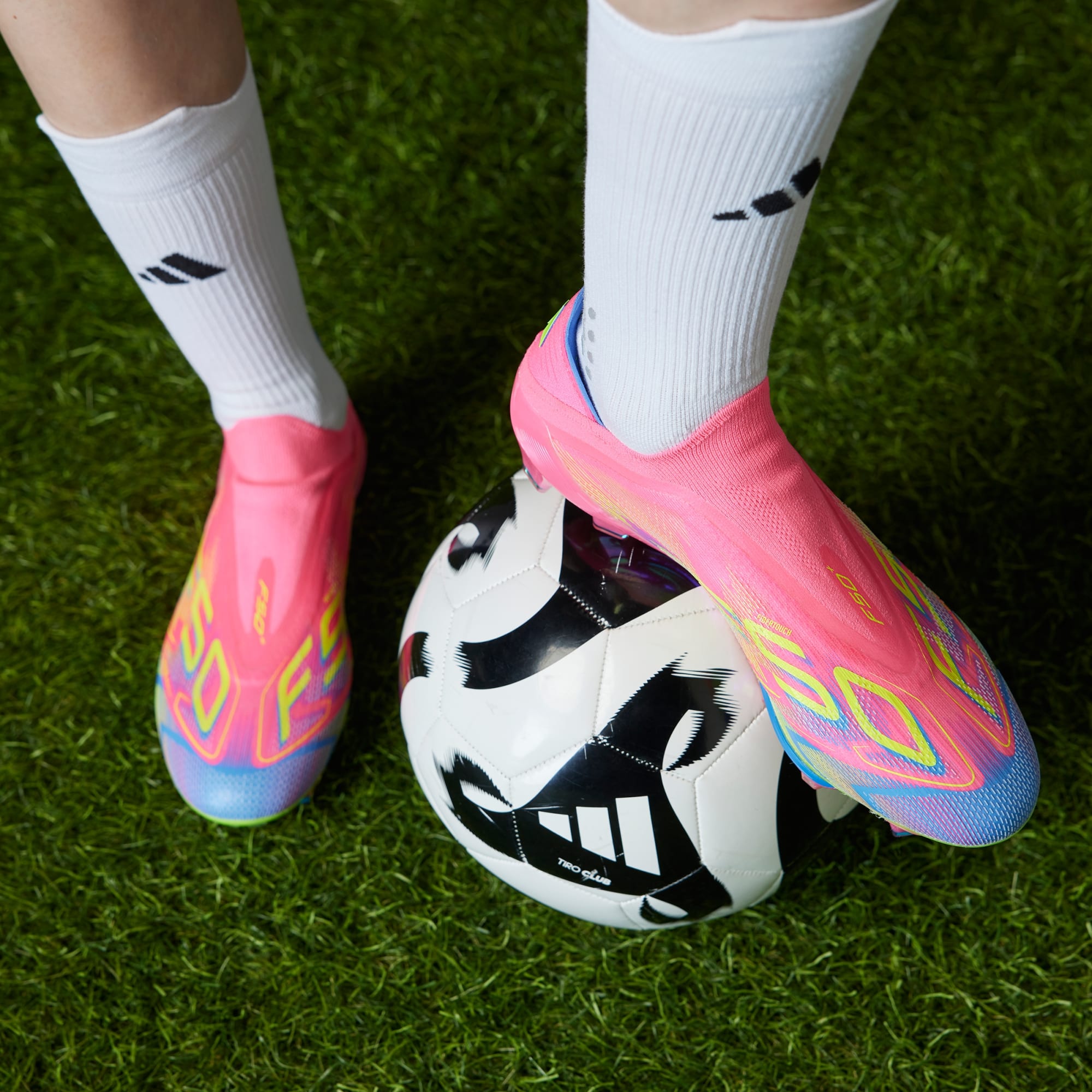 Push your pace to the limit in lightweight adidas F50 footwear engineered for speed. The pinnacle of the range, these football boots supersize the speed boot experience with a Sprintframe 360+ outsole featuring a double forefoot plate for snappy acceleration. Inside the Fibertouch upper, a Lightstrike Pro insert and Compression Fit Tunnel Tongue keep you comfortable and secure. Sprintweb 3D texturing on the forefoot enhances high-speed dribbling. This product features at least 20% recycled materials. By reusing materials that have already been created, we help to reduce waste and our reliance on finite resources and reduce the footprint of the products we make.