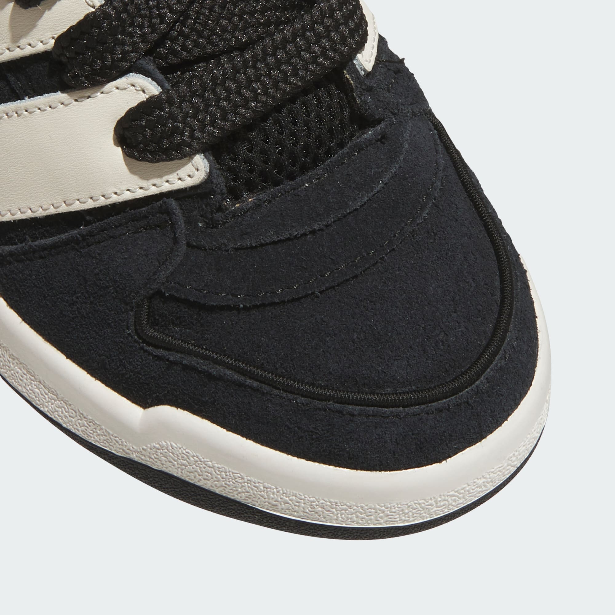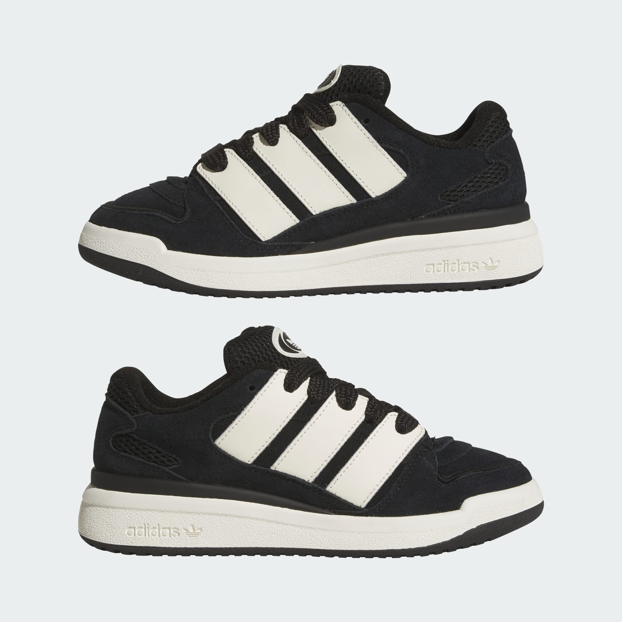 These juniors' adidas shoes bring back the energy of the new millennium. Their volume is turned way up, with an exaggerated upper, oversize 3-Stripes and a puffed tongue. The soft suede upper is detailed with smooth leather and finished with chunky laces. All this rides on a cupsole with a rubber outsole for grip.