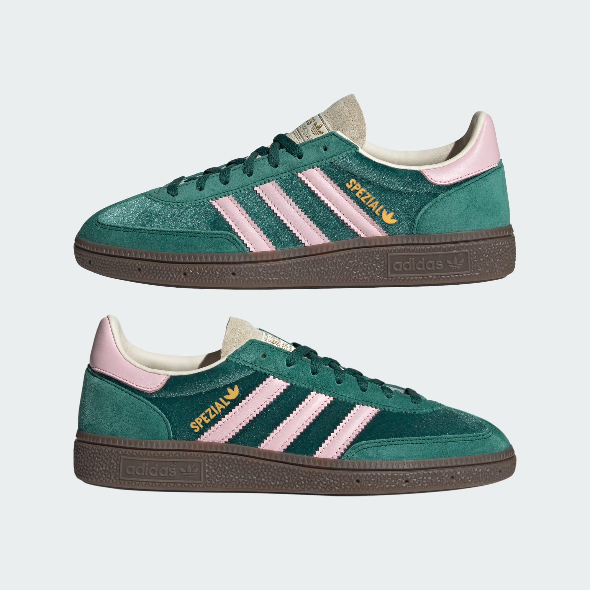 Originally designed for indoor sport, the Handball Spezial now brings vintage appeal to modern street style. Supple velvet envelops the foot in a luxurious feel, while suede accents add durability and depth. The low-profile gum rubber outsole with multidirectional traction provides dependable grip from sidewalk to shopping centre. Steeped in adidas heritage yet fiercely contemporary, these shoes channel a playful spirit for streetwear creators who follow their own vision to new fashion frontiers. These vintage trainers have a laid-back vibe and all-day comfort that's a perfect match with jeans, fleece or dressed up a bit with a slim pencil skirt.