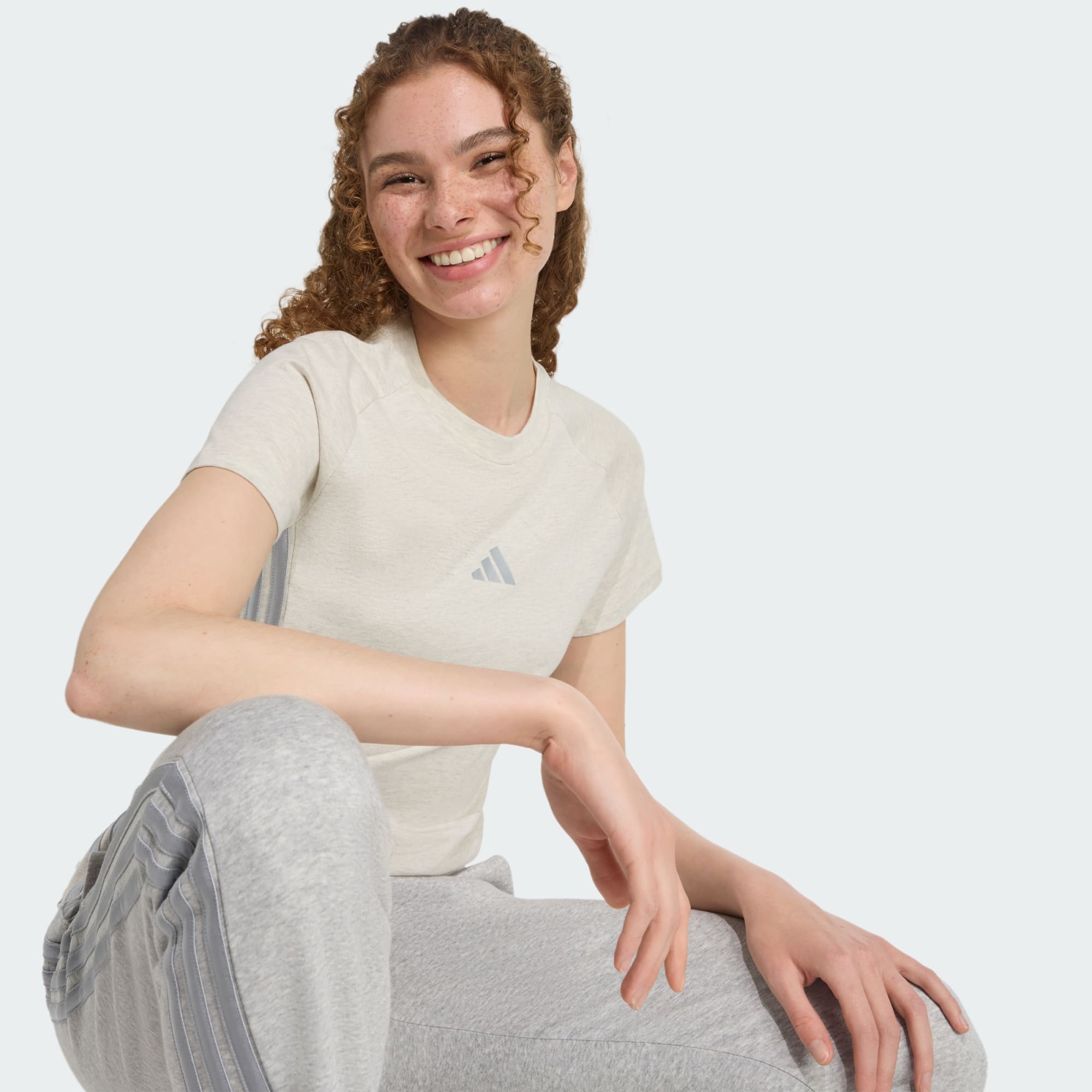 This adidas tee is cut for a slim fit that hugs your body just right. Made from soft single jersey, it's finished with metallic 3-Stripes and a 3 Bar Logo for a touch of shine. Pair it with anything from jeans to a maxi skirt for a look that's effortlessly chic.