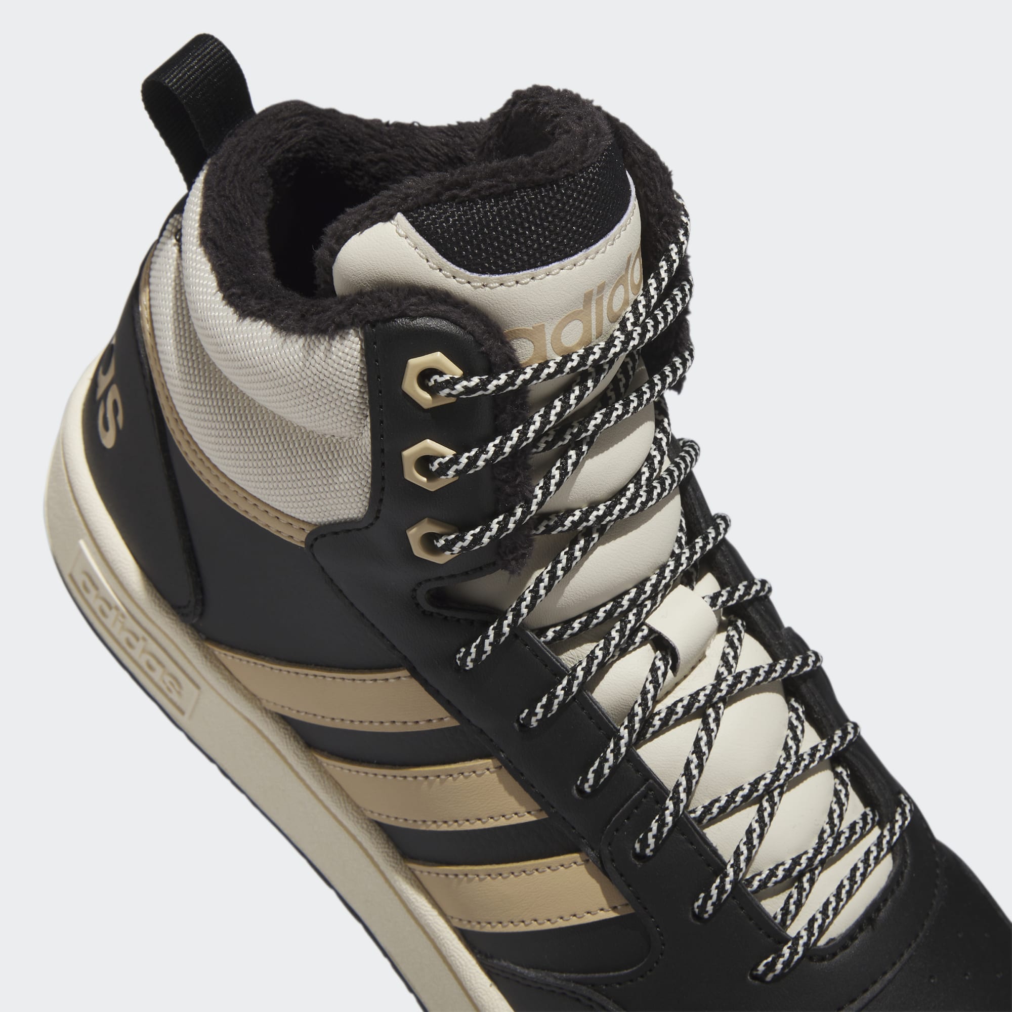 When the weather turns cold, these basketball-style adidas shoes will team with everything from dark denim to thick sweat pants. The mid-cut design offers more coverage at the ankle while the textile fur lining keeps feet cosy. They're finished with durable round laces and a sturdy rubber cupsole.