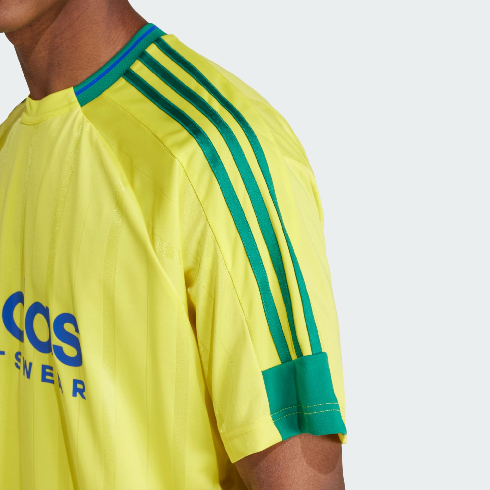 Celebrate authenticity, community and belonging in this adidas tee. Inspired by the spirit of football championships, allover stripes come together with bold branding for a sporty look that pairs well with jeans and joggers alike. As the world unites to enjoy the beautiful game, make a statement and show you belong in this eye-catching t-shirt. This product is made with 100% recycled materials. By reusing materials that have already been created, we help to reduce waste and our reliance on finite resources and reduce the footprint of the products we make.