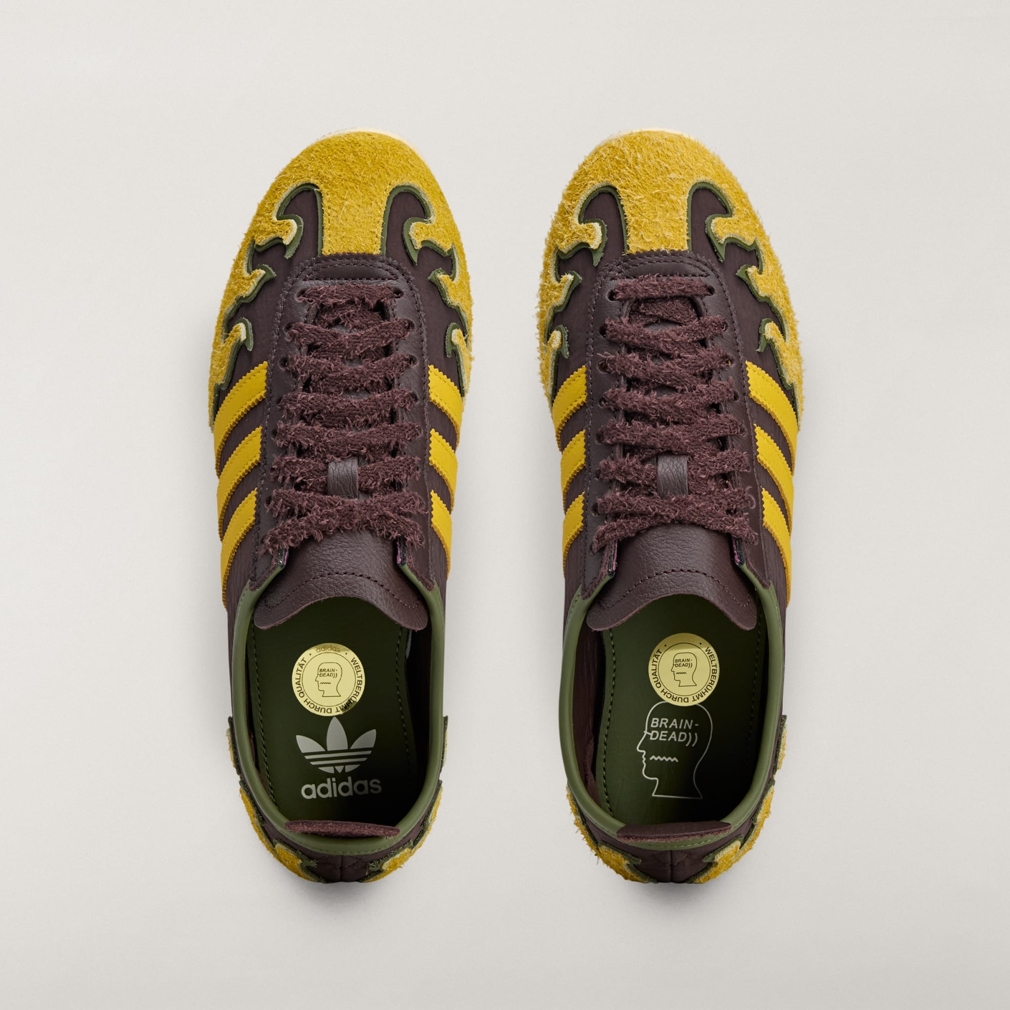 The Japan Lo Brain Dead shoes are where style meets statement. Designed in collaboration with Brain Dead, these shoes bring a unique twist to your footwear collection. The leather and textile upper offers a premium feel, while the rubber outsole provides durability and grip. With a regular fit, these shoes provide comfort for all-day wear. The Cold Cement construction adds to the robust build of these shoes, making them suitable for everyday adventures. Whether you're hitting the streets or hanging out with friends, these adidas shoes will keep you stylish and comfortable.