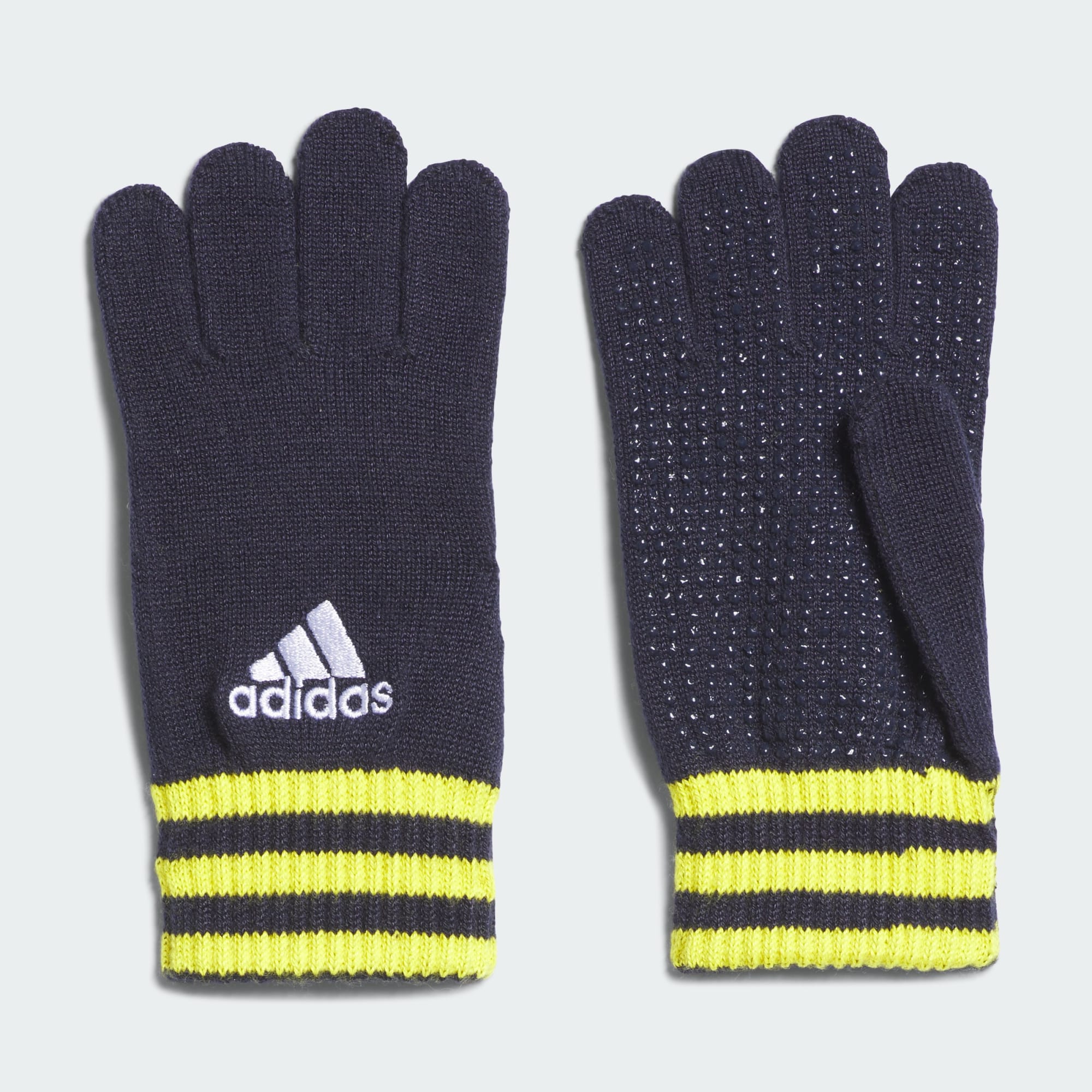 Whether at recess or walking to school, their hands will stay cosy in these kids' adidas knit gloves. Made from soft acrylic yarn, they offer warmth for chilly days. Silicone grips on the palms help kids keep a hold of their everyday items. This product is made with at least 50% recycled materials. By reusing materials that have already been created, we help to reduce waste and our reliance on finite resources and reduce the footprint of the products we make.