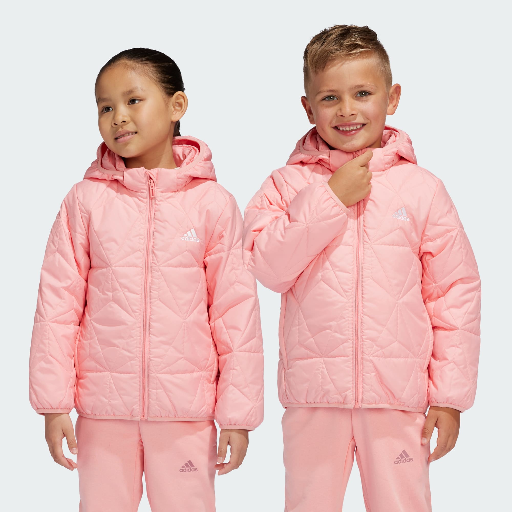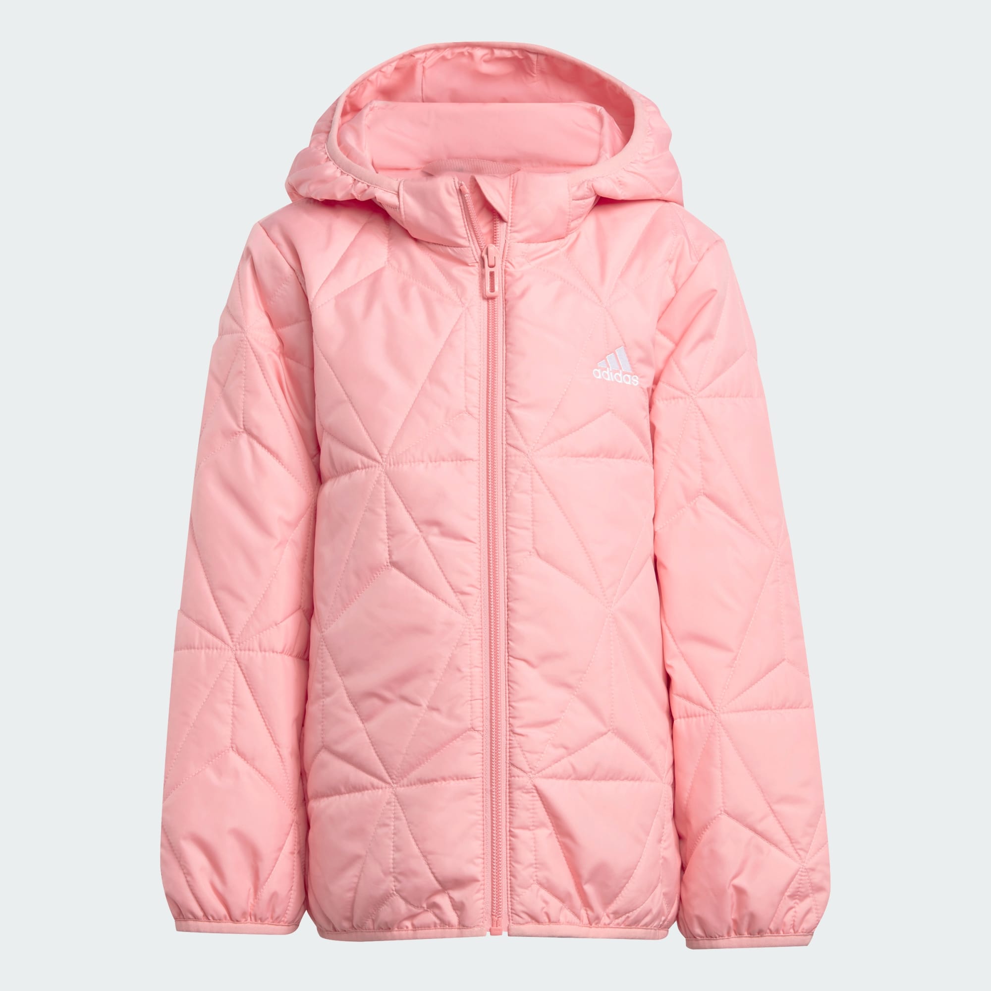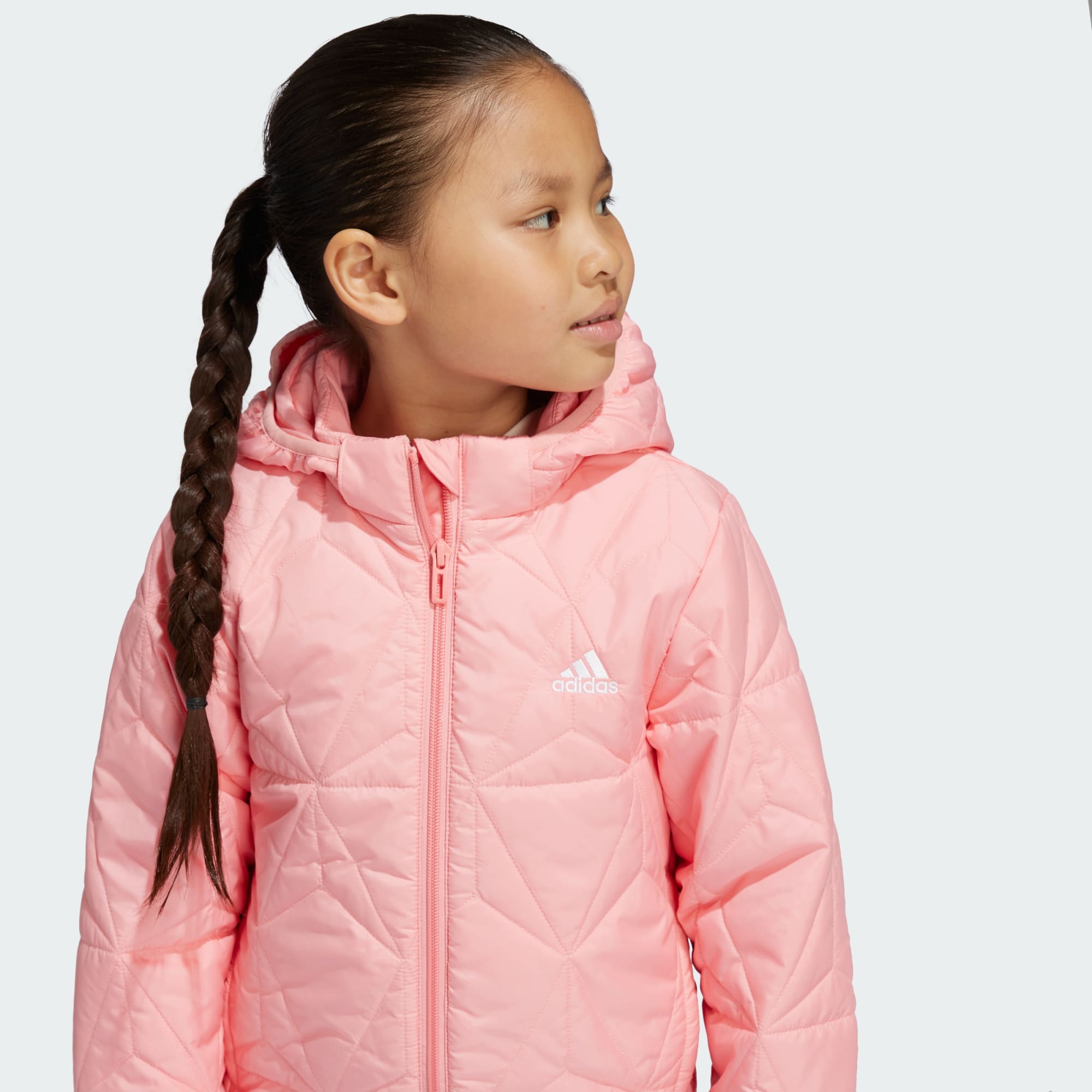 Easy to carry, this kids' adidas jacket packs into a hidden pocket so kids have it to hand when the weather changes. The quilted padding provides warmth without bulk when the weather's on the chilly side. Fitted with a detachable hood, this jacket adapts to suit the seasons while reflective details keep kids visible after dark. This product is made with 100% recycled materials. By reusing materials that have already been created, we help to reduce waste and our reliance on finite resources and reduce the footprint of the products we make.