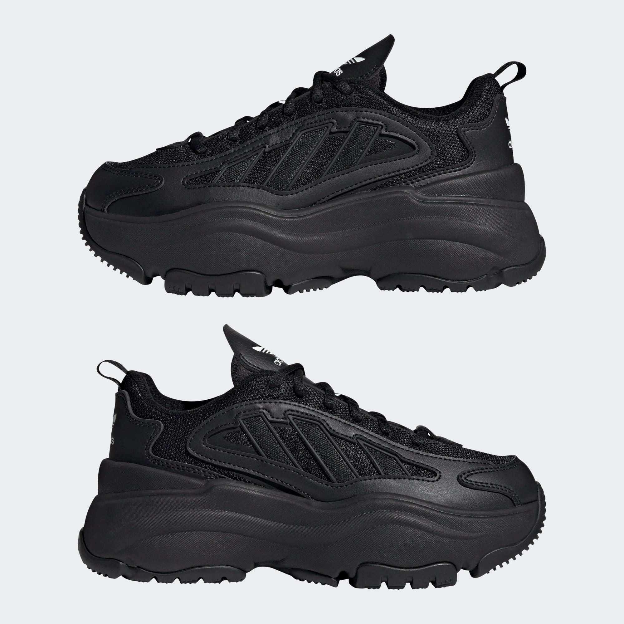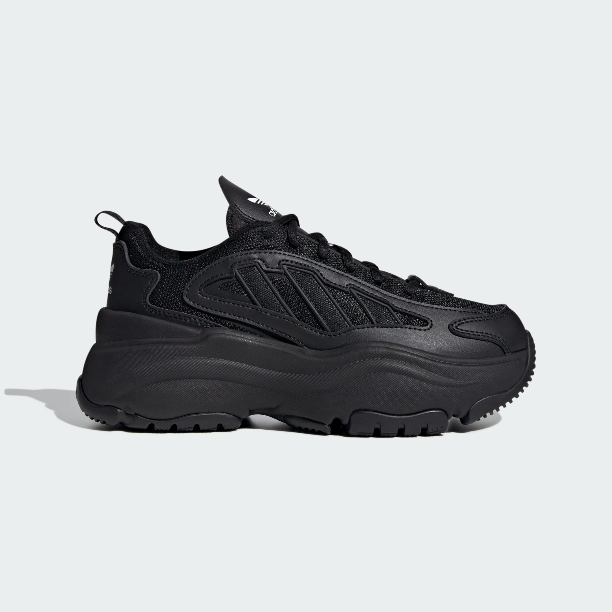 Your easy go-to shoes are here with a bold look and even bolder proportions. Meet the adidas Ozgaia sneakers, named for Gaia, Greek goddess of the earth. The mesh and synthetic leather upper sits on a chunky one-piece rubber outsole. Signature 3-Stripes run across the upper in modern form.