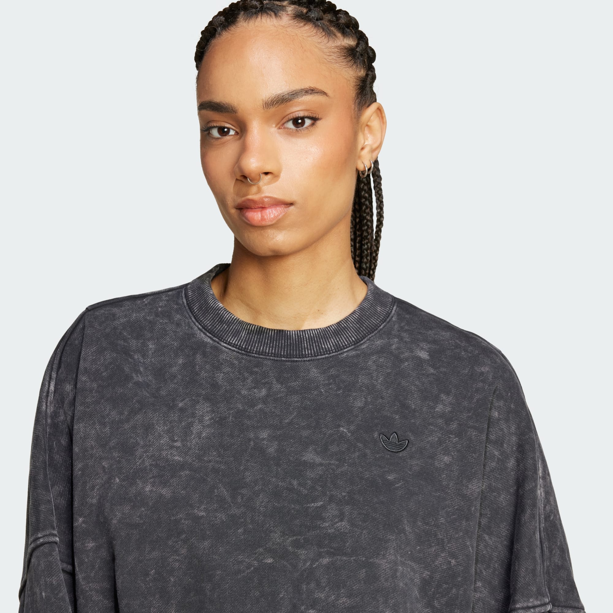 Delightfully oversized through the sleeves and body, this adidas sweatshirt is fitted around the cuffs and waist, creating a stylishly voluminous look. Soft French terry material keeps it cosy, providing a feel that's just right for the season. Wear it with jeans, a skirt or leggings, or with your favourite pair of joggers for an athleisure vibe.