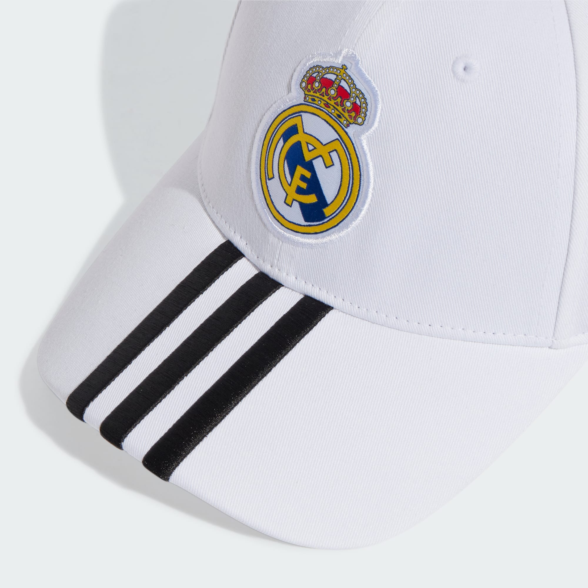 Express your Real Madrid pride from the shade of this classic adidas baseball cap. Made of soft cotton twill and boasting a curved brim, it's an essential for match day and beyond. The adjustable strap provides a custom fit. That woven team crest on the front leaves no doubt where your football loyalties lie.
