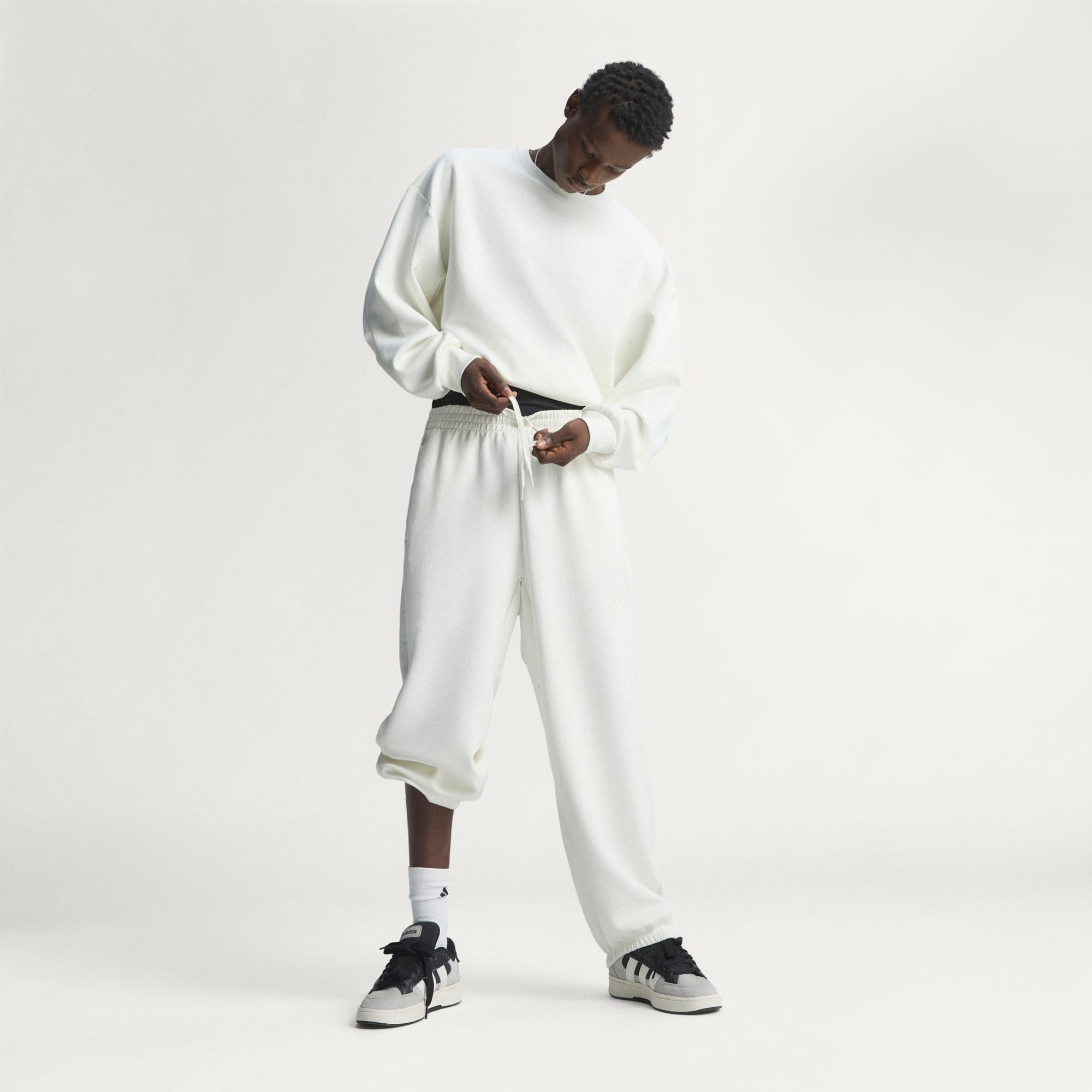 These Soft Lux Pants redefine comfort and style, blending modern sophistication with effortless luxury. Designed for seamless transitions, they feature clean lines and refined workmanship, offering timeless versatility. The relaxed balloon fit of these soft trousers provides ease of movement and a stylish silhouette. Tonal branding embodies a sleek, minimalist aesthetic, a great choice for pairing with training wear or casual outfits. Crafted from peached spacer fabric with modal, they also offer a luxurious and soft handfeel, making them a wardrobe staple for any occasion. Elasticised cuffs and self-extended waistband with an inner drawcord offer adjustability for a personalised fit. Experience the future of sportswear, where comfort meets style in a harmonious blend. Whether you're lounging at home or stepping out, these trousers promise to elevate your look with their premium materials and thoughtful design.