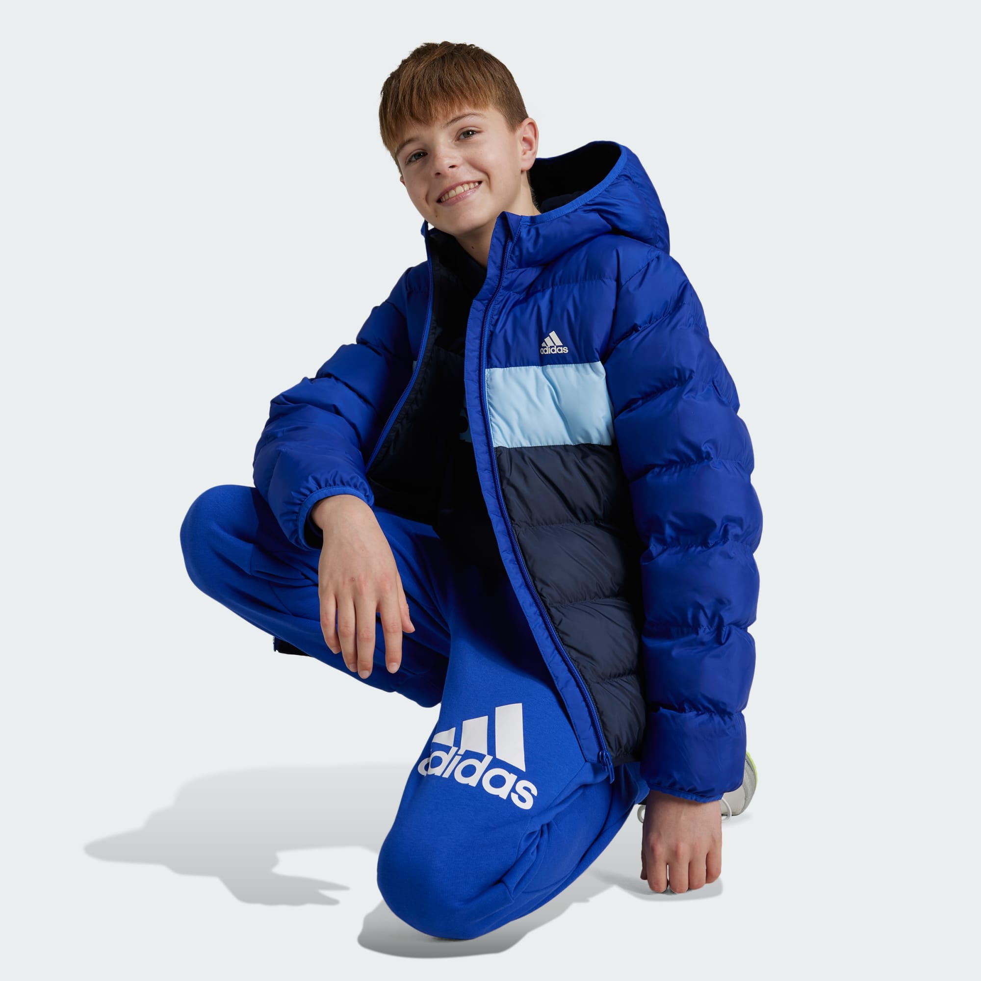 Pursue your favourite activities even when the weather turns cold. This juniors' adidas jacket is padded with lightweight insulation that offers warmth without the bulk. Whether you're heading to football practise, walking the dog or catching up with friends, you can make the most of shorter days thanks to reflective details that keep you visible in low light.This product is made with 100% recycled materials. By reusing materials that have already been created, we help to reduce waste and our reliance on finite resources and reduce the footprint of the products we make.
