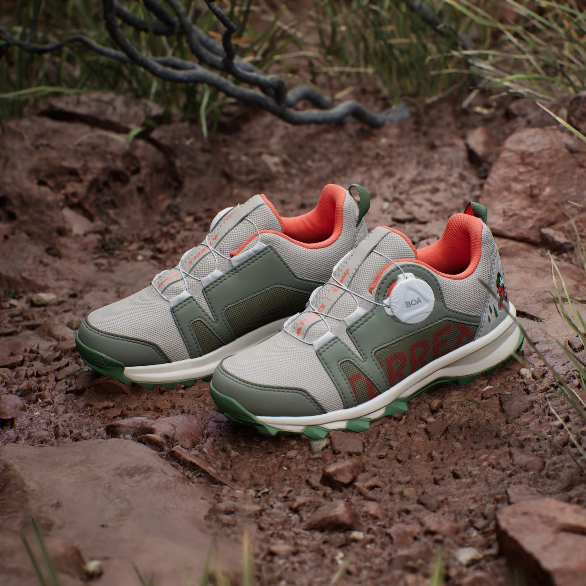 Kids can run the trails with Mickey Mouse right on their heels in these adidas x Disney trail running shoes. Thanks to a durable upper and grippy Traxion outsole, your budding trail runner can keep pace and maintain confident footing on smooth urban paths and rocky alpine trails. The micro-adjustable BOA® Fit System makes getting into and out of their shoes by themselves easy and lets them make quick adjustments along the way. This product features at least 20% recycled materials. By reusing materials that have already been created, we help to reduce waste and our reliance on finite resources and reduce the footprint of the products we make.