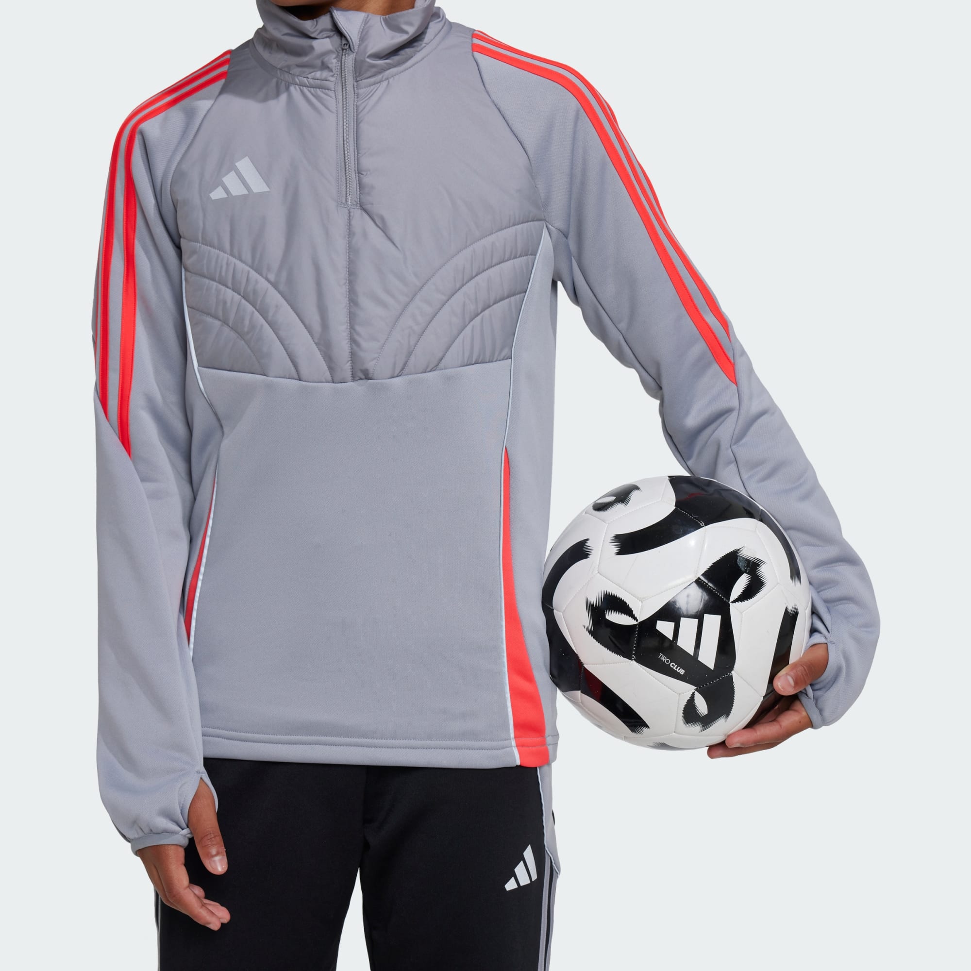 Stay focused on the pitch when the temperature drops. This juniors' adidas football top keeps you warm and ready for action. Strategically placed fleece padding at the chest and a cosy collar shield you from chill, so you can push through intense drills without distraction. The slim fit keeps you streamlined for high-speed sprints.This product is made with 100% recycled materials. By reusing materials that have already been created, we help to reduce waste and our reliance on finite resources and reduce the footprint of the products we make.