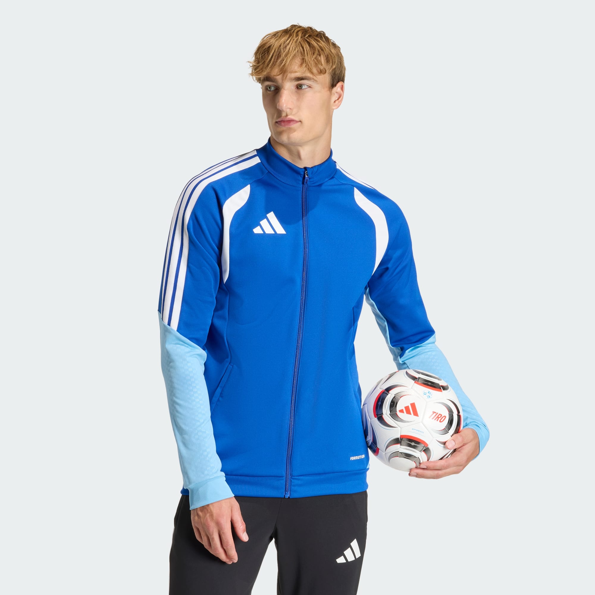 Designed for those who live and breathe football, the Tiro 26 Competition Training Jacket blends heritage with modern innovation. Its sleek design and high-quality materials help you stay at the top of your game, whether you're training or socialising off the pitch. Move freely. adidas Formotion is designed to free your movement, not restrict it. Iconic mesh chest inserts offer ventilation too, helping to keep you cool and focused. With an embossed design element on the arm and side inserts, this tracksuit top doesn't just perform. It makes a statement. Elevate your training experience with this adidas jacket and feel the difference.