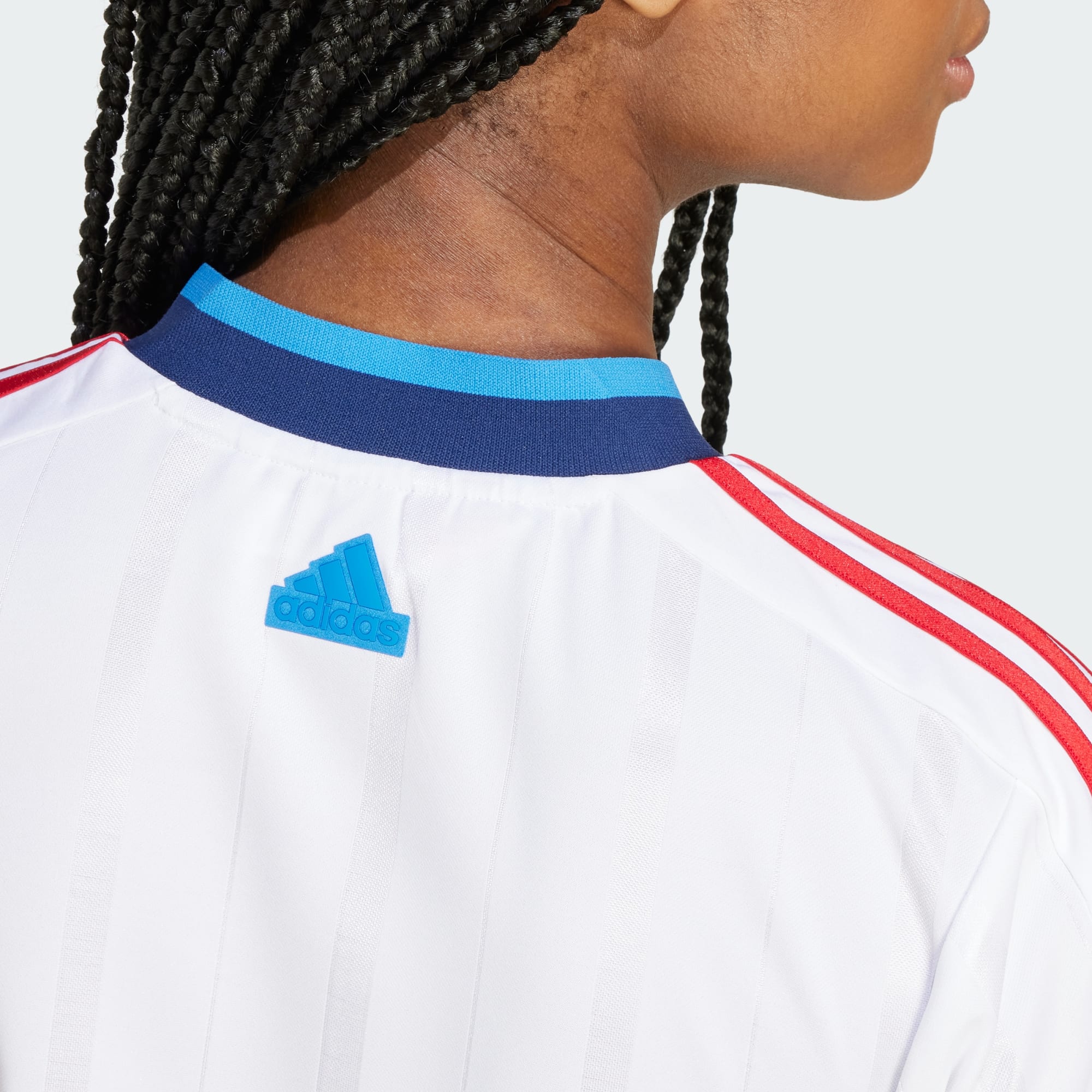 Whether you're heading to a concert or kicking back on the weekend, this adidas jersey adds football-inspired style to your casual look. The doubleknit fabric feels soft against the skin while the crop cut lends a fashion-forward edge. Born from football but reimagined for everyday wear, wide stripes and a V-neck, ribbed collar keep things rooted in sport. Paired with tights or jeans, this top moves seamlessly from day to night.This product is made with 100% recycled materials. By reusing materials that have already been created, we help to reduce waste and our reliance on finite resources and reduce the footprint of the products we make.