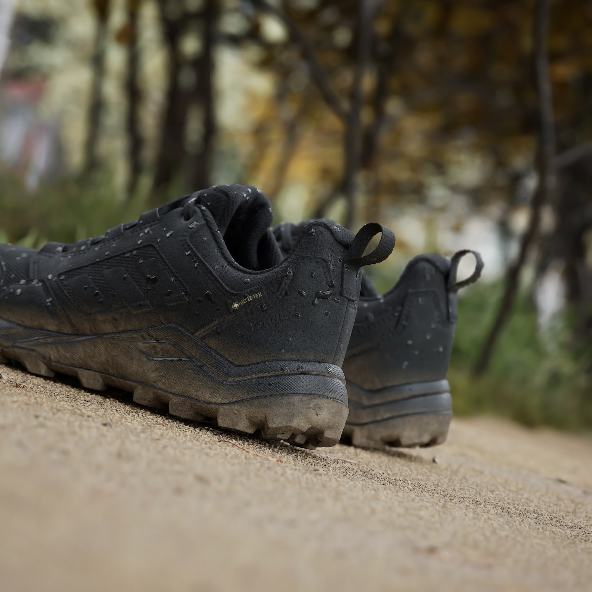 Extend your range beyond the city streets and hit the trails with confidence in these adidas trail running shoes. Lightweight cushioning gives you that familiar running-shoe comfort across all terrain, paved or trail. A waterproof, breathable GORE-TEX membrane lets you explore wet, muddy trails and finish your run with dry feet. From hopping rocks to crossing creeks, the open-mesh upper offers breathability and the Traxion rubber outsole provides grip so you can navigate slick surfaces with ease. Made with a series of recycled materials, this upper features at least 50% recycled content. This product represents just one of our solutions to help end plastic waste.