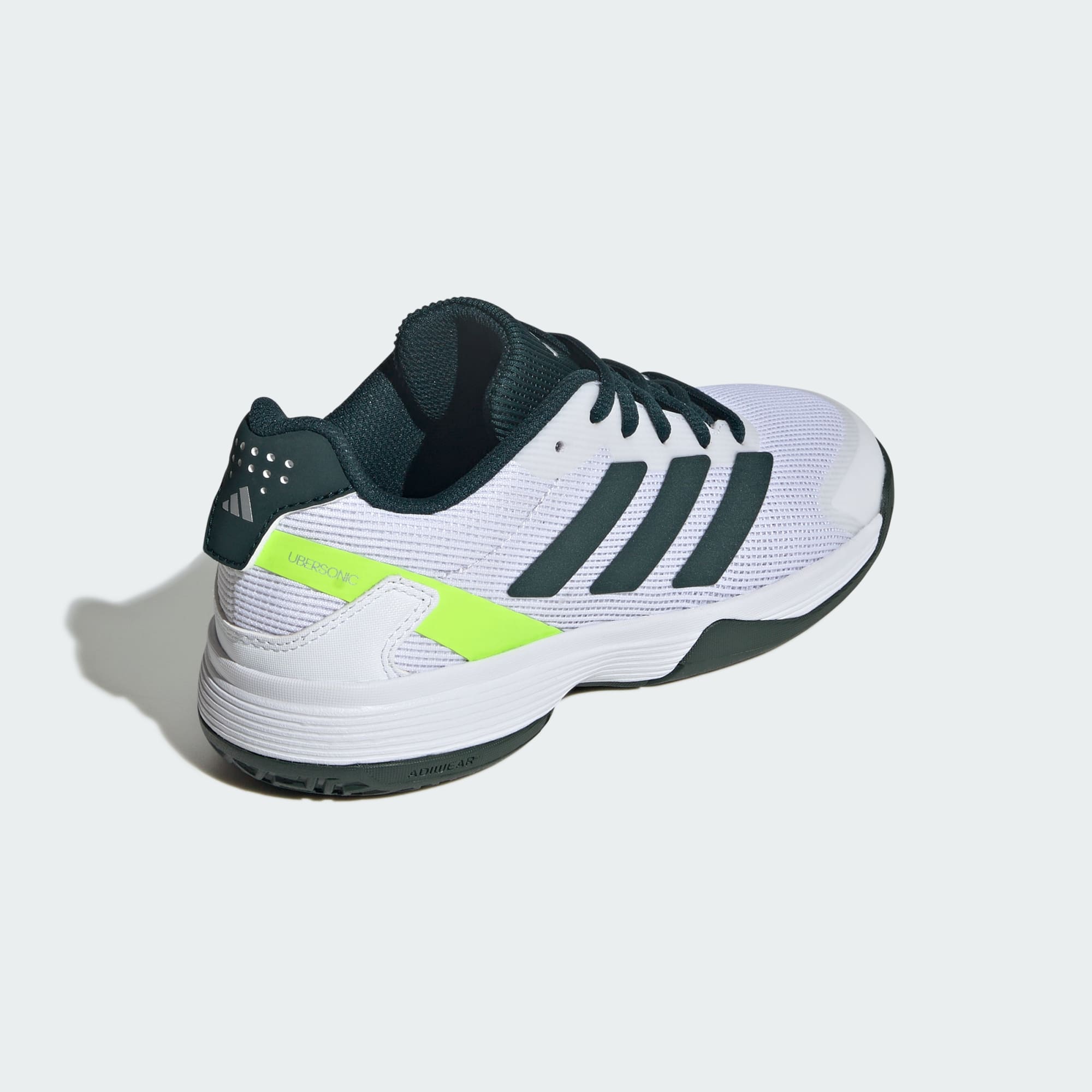Watch them supercharge their game on the court in these kids' Ubersonic tennis shoes from adidas. Mimicking the look of the elite Adizero Ubersonic 5, the lightweight textile upper is built for quick moves, letting young players unlock their agility. Underneath, an Adiwear outsole offers maximum durability for long-lasting play. This product features at least 20% recycled materials. By reusing materials that have already been created, we help to reduce waste and our reliance on finite resources and reduce the footprint of the products we make.