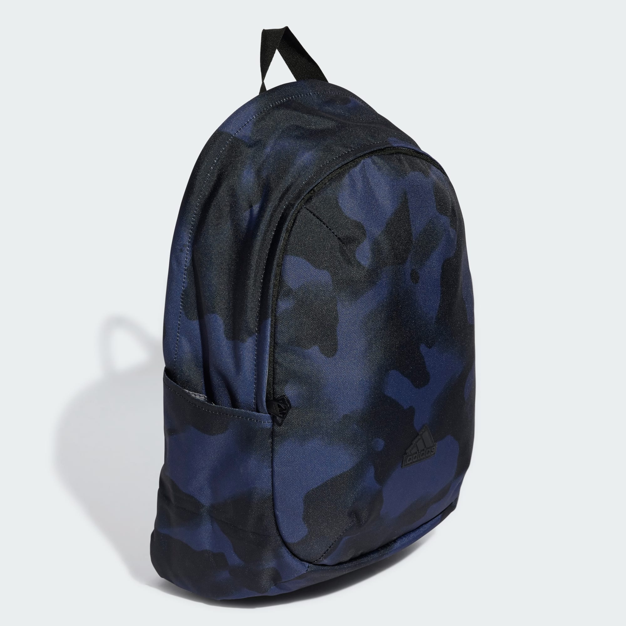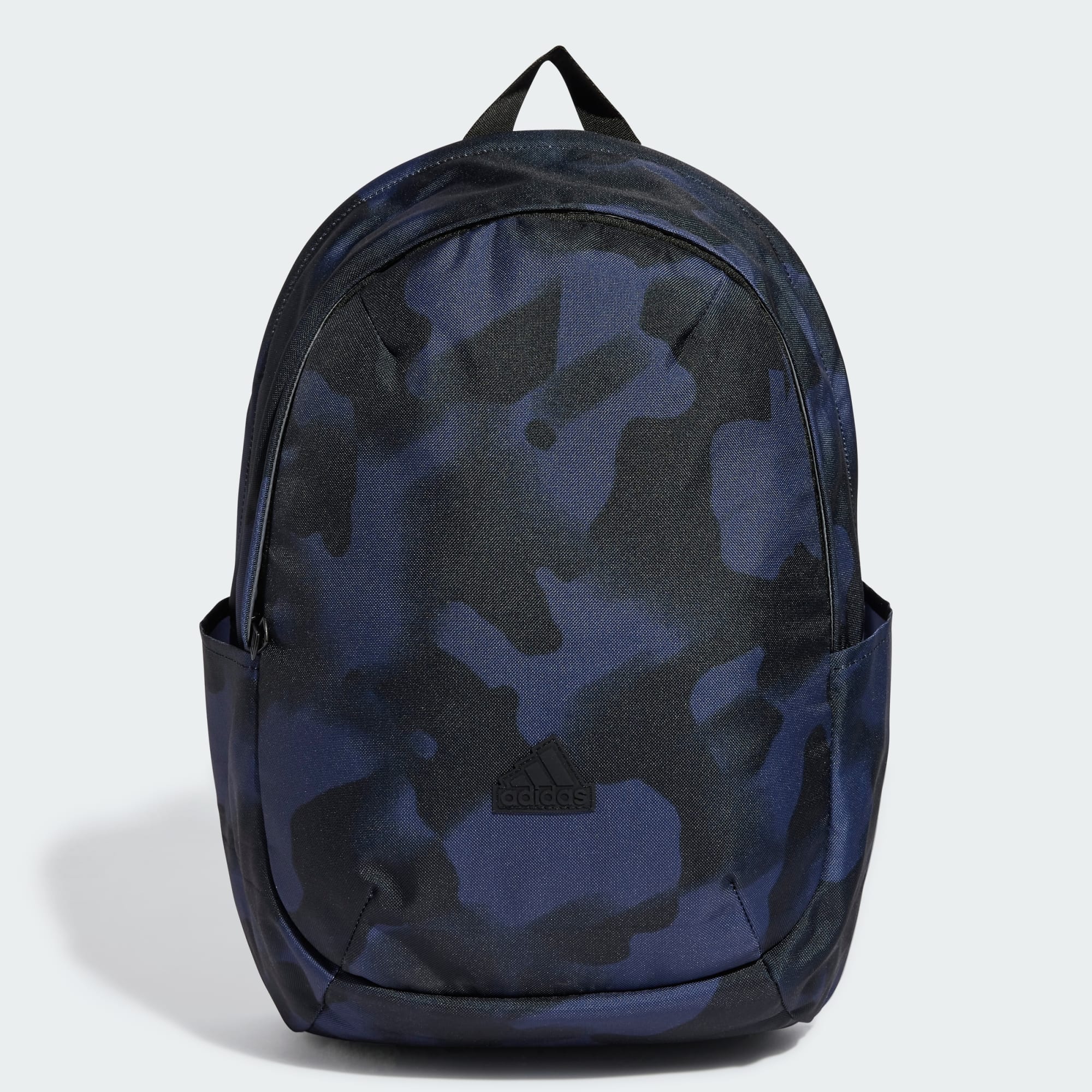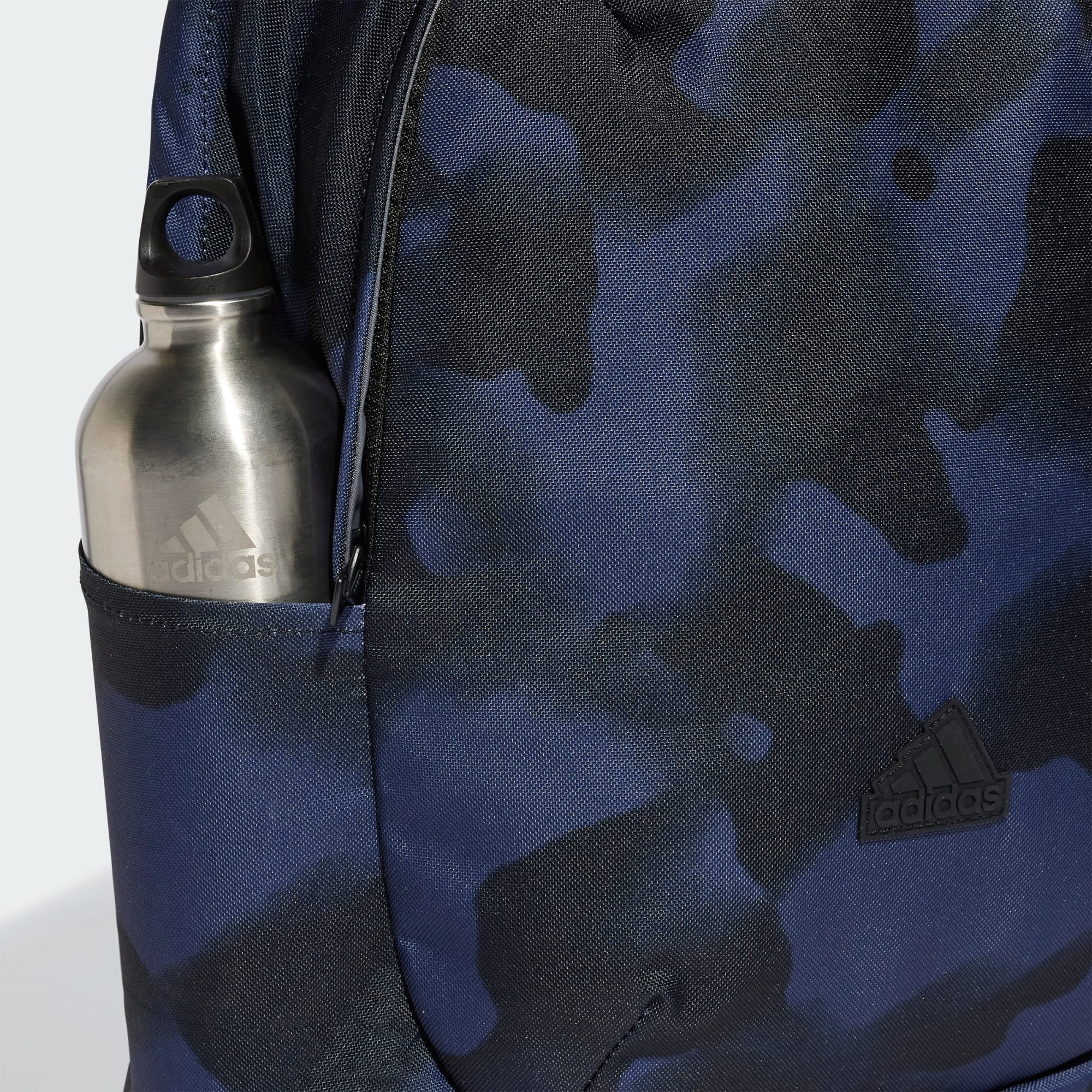 Let your style shine no matter where life takes you in this adidas backpack. Made from recycled polyester, it has a durable yet chic design. Slip your laptop, books and other must-haves into the spacious main compartment and smaller front pocket. Padded, adjustable straps make it easy to carry all day, while side pockets keep your water bottle close at hand. With a sleek look and eye catching print, this backpack has you covered. This product is made with at least 50% recycled materials. By reusing materials that have already been created, we help to reduce waste and our reliance on finite resources and reduce the footprint of the products we make.
