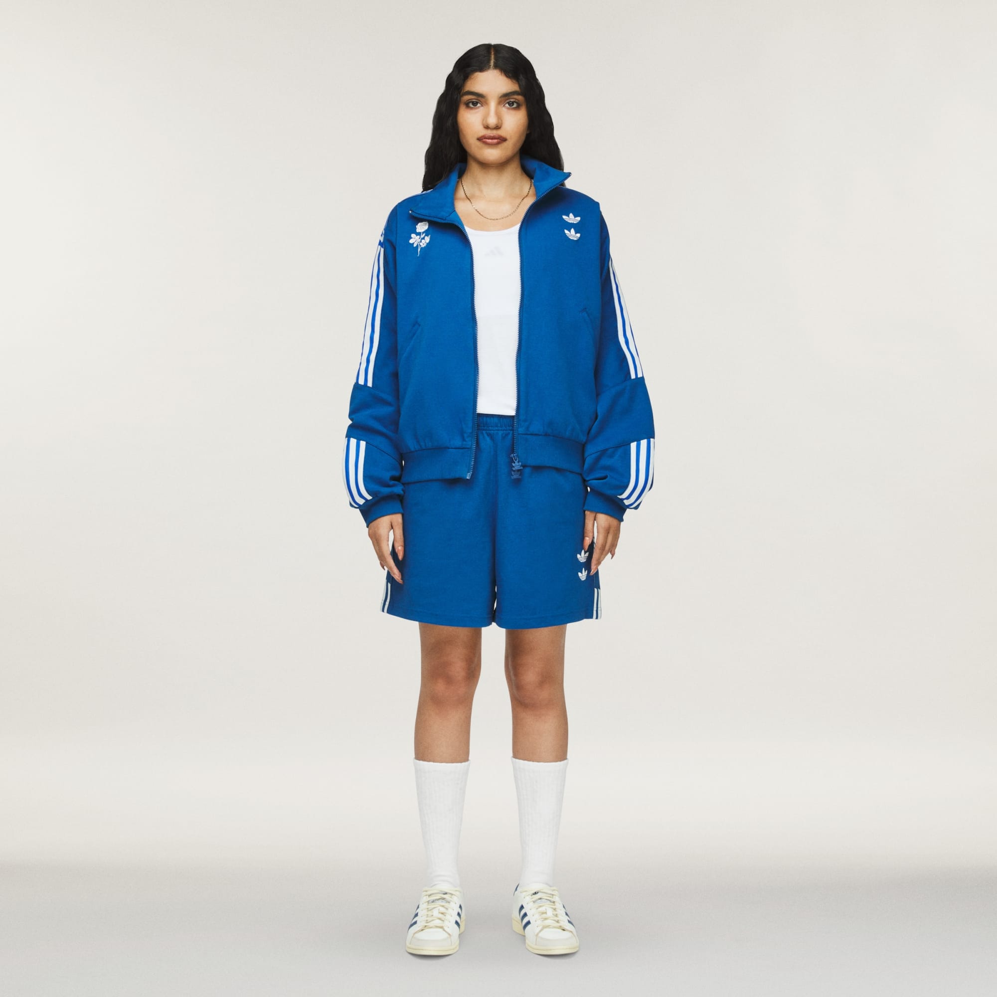 The Chavarria Gym Short is elevated in a heavyweight jersey fabric to provide exceptional quality and comfort. Functional details include drawcords and side pockets. Branding is symbolized by embroidered double trefoils on the wearer's left hip. Adidas applied stripes appear on each leg in two segments, with Chavarria on the side.
