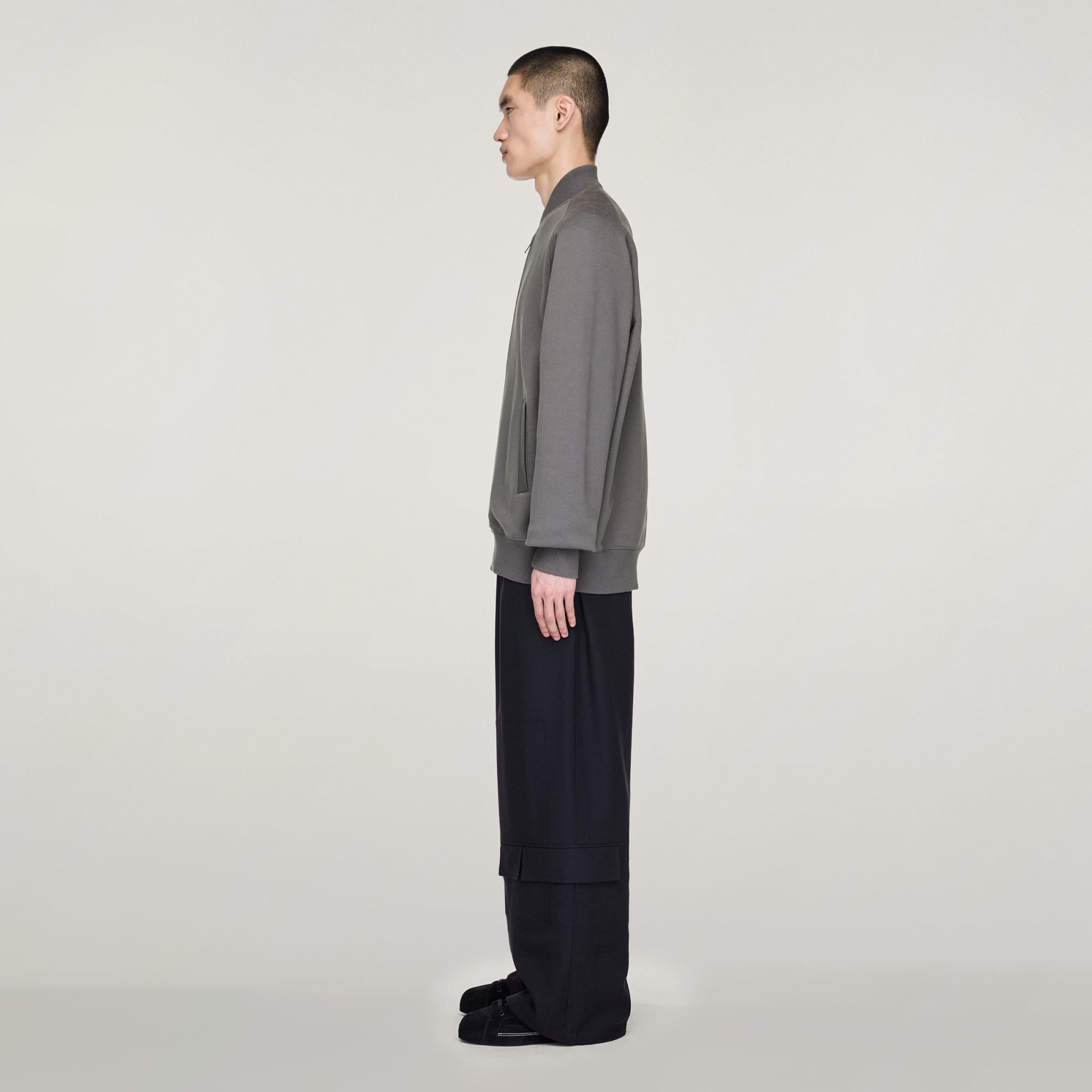 - Ribbed cuffs and hem