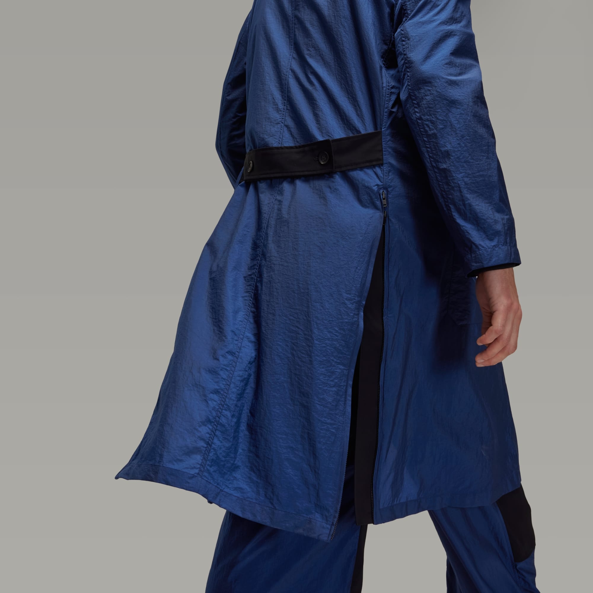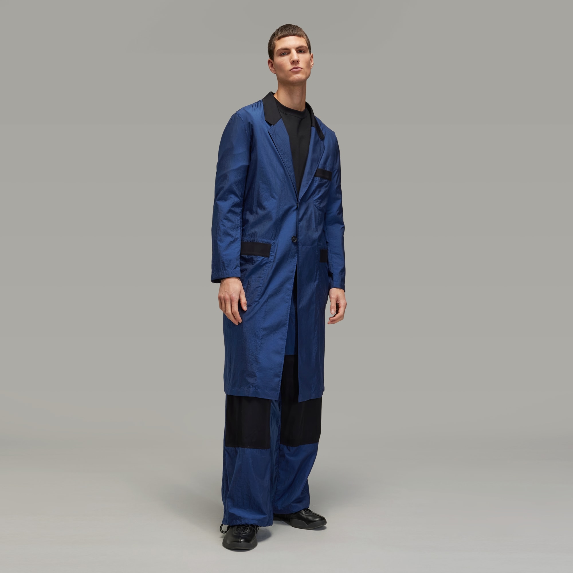 The Y-3 Ultralight Nylon Blazer Coat is the epitome of the long-standing collaboration between adidas and Yohji Yamamoto. The streamlined silhouette is dramatic just by presence, with a fit that cloaks the body with an elegant drape. Zips on the back allow you to open the lower body to create more flow, more personalisation and more play. Different materials play throughout — nylon taffeta in some places, and rayon plain weave material in others.