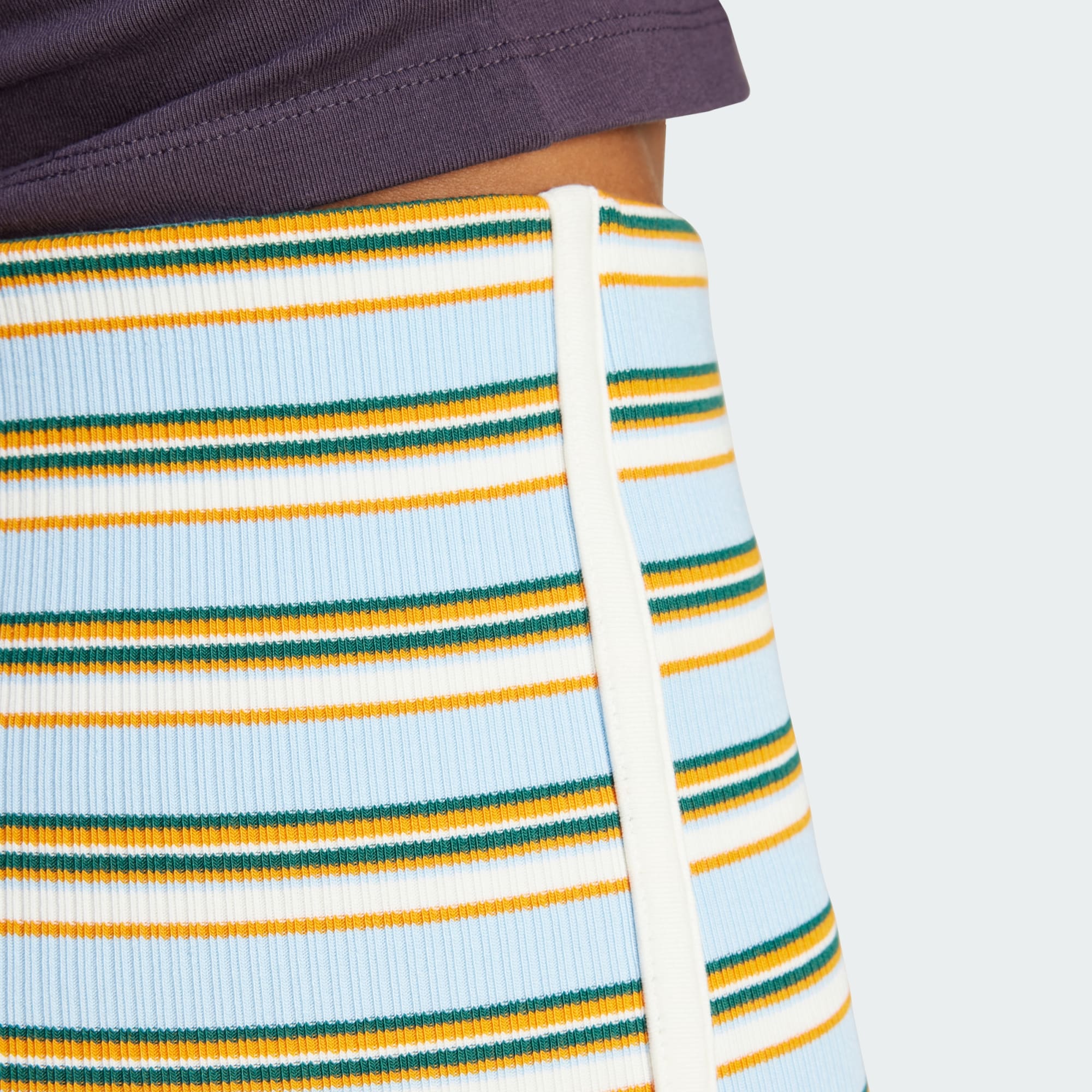 Renkli çizgilere sahip, kısa örme şort