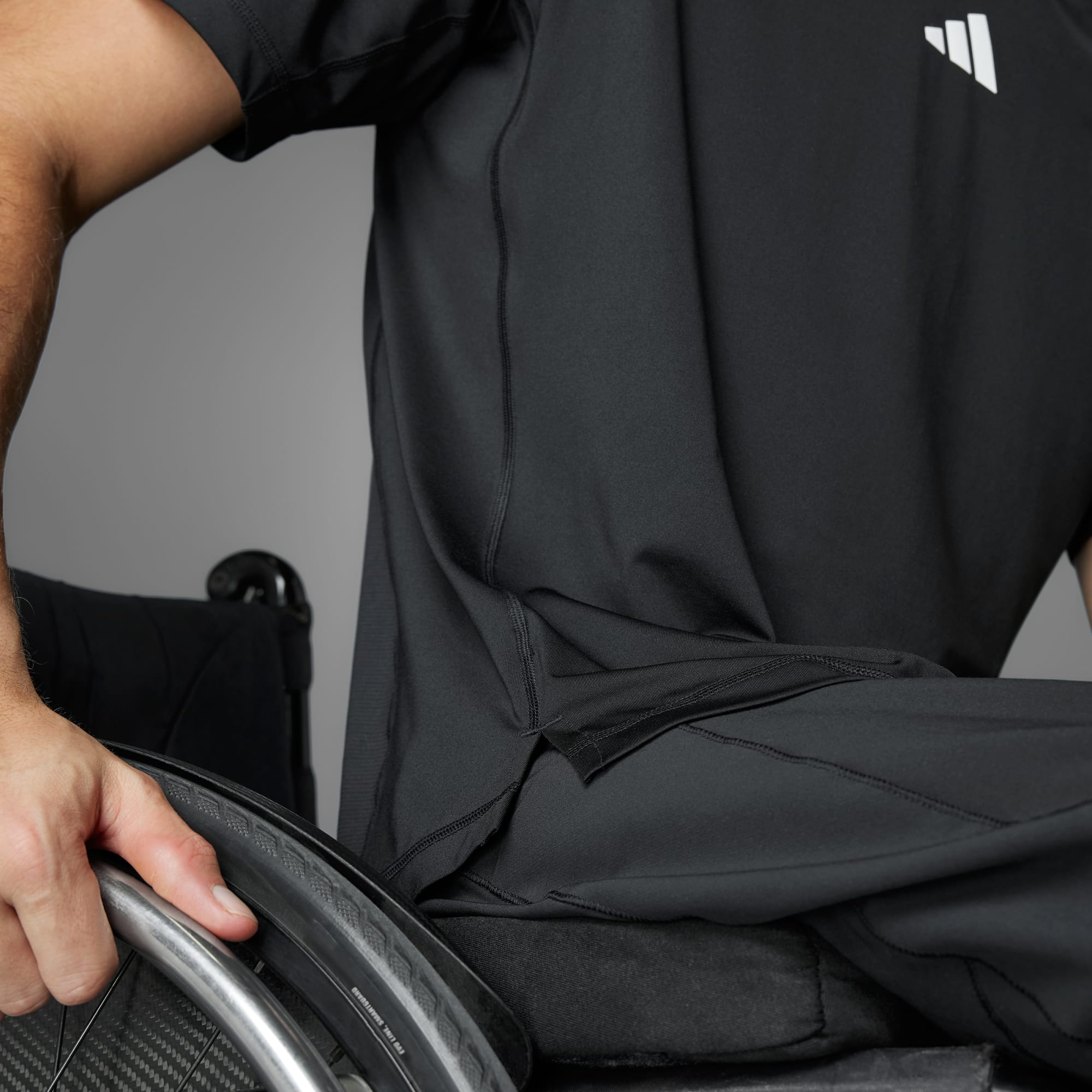 Belirli oranda geri dönüştürülmüş malzemelerle üretilen, tekerlekli sandalye kullanan sporculara özel tişört