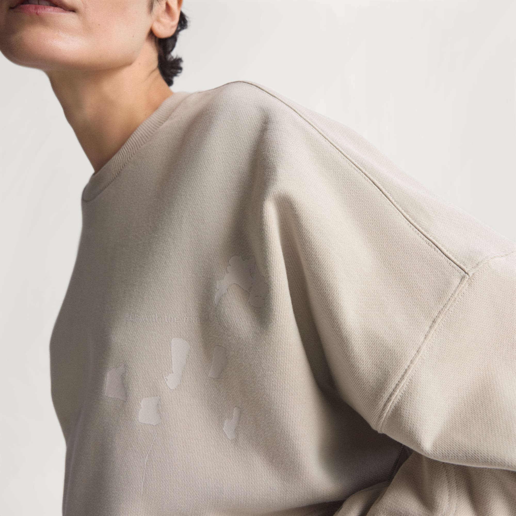 Bol kesim bisiklet yaka sweatshirt, yumuşak havlu kumaşla günlük konfor sağlar.