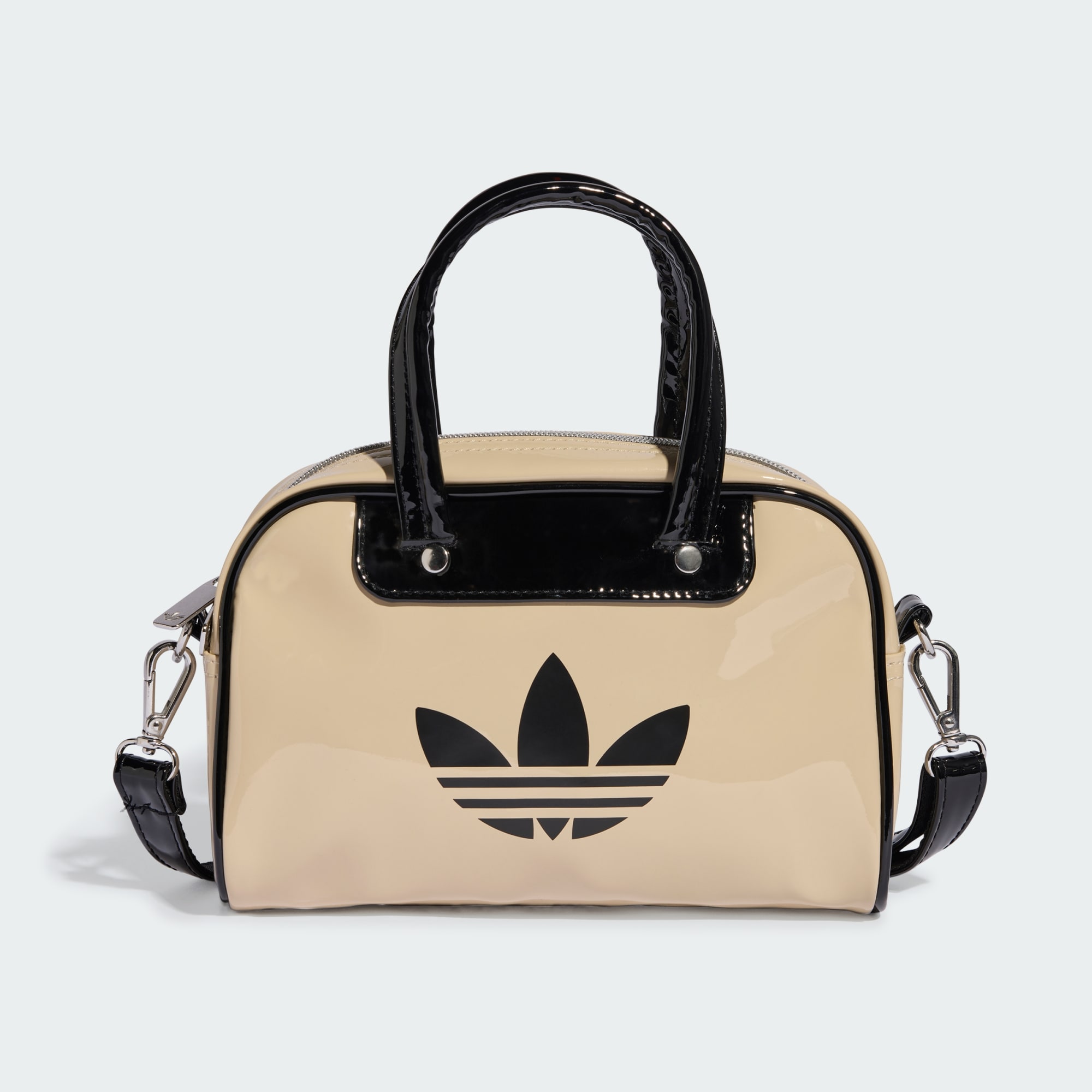 Arşiv stilini temel alan Adicolor Mini Bowling Çanta, önemli eşyalarını retro esintili bir şıklıkla taşımana olanak tanır. İster omzuna as ister elinde taşı, bu çanta parlak rugan yüzeyi ve zıt renk detayları ile şık bir duruş sergiler. Ayarlanabilir ve çıkarılabilir askısı ile farklı taşıma seçenekleri sunarken, metal perçinleri ile premium görünüm kazanır. Parlak Trefoil ise görünümü tamamlar.