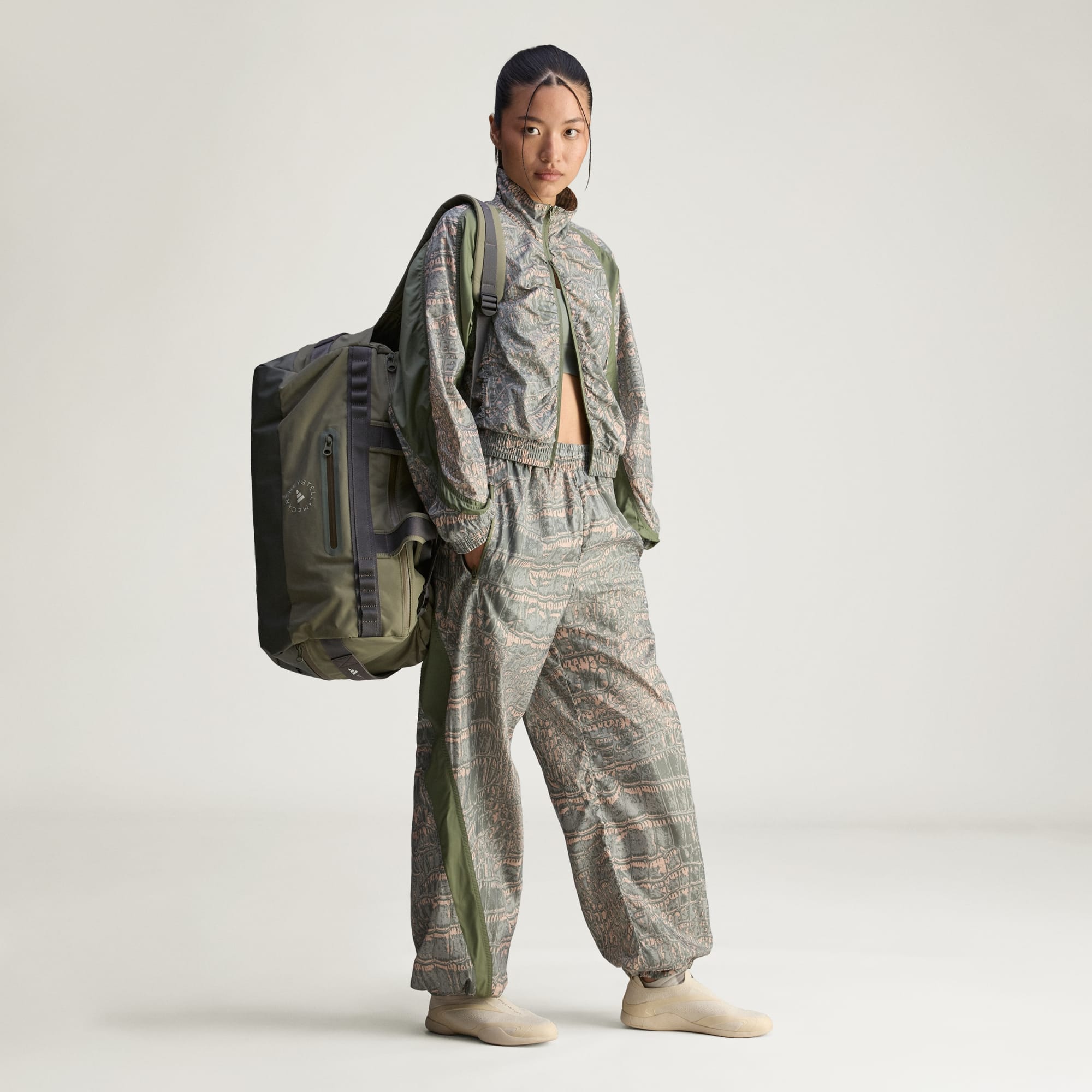 Hayvan desenli giysiler günlük sayılmaz ama bu adidas by Stella McCartney eşofman altının kesimi ve malzemesi tam olarak günlük giyime uygun ve konforlu olmasını sağlar. Bol kesim, bacaklara daha belirgin ve bol bir görünüm kazandırmak için paçalardaki bağcıklarla tamamlanmıştır.