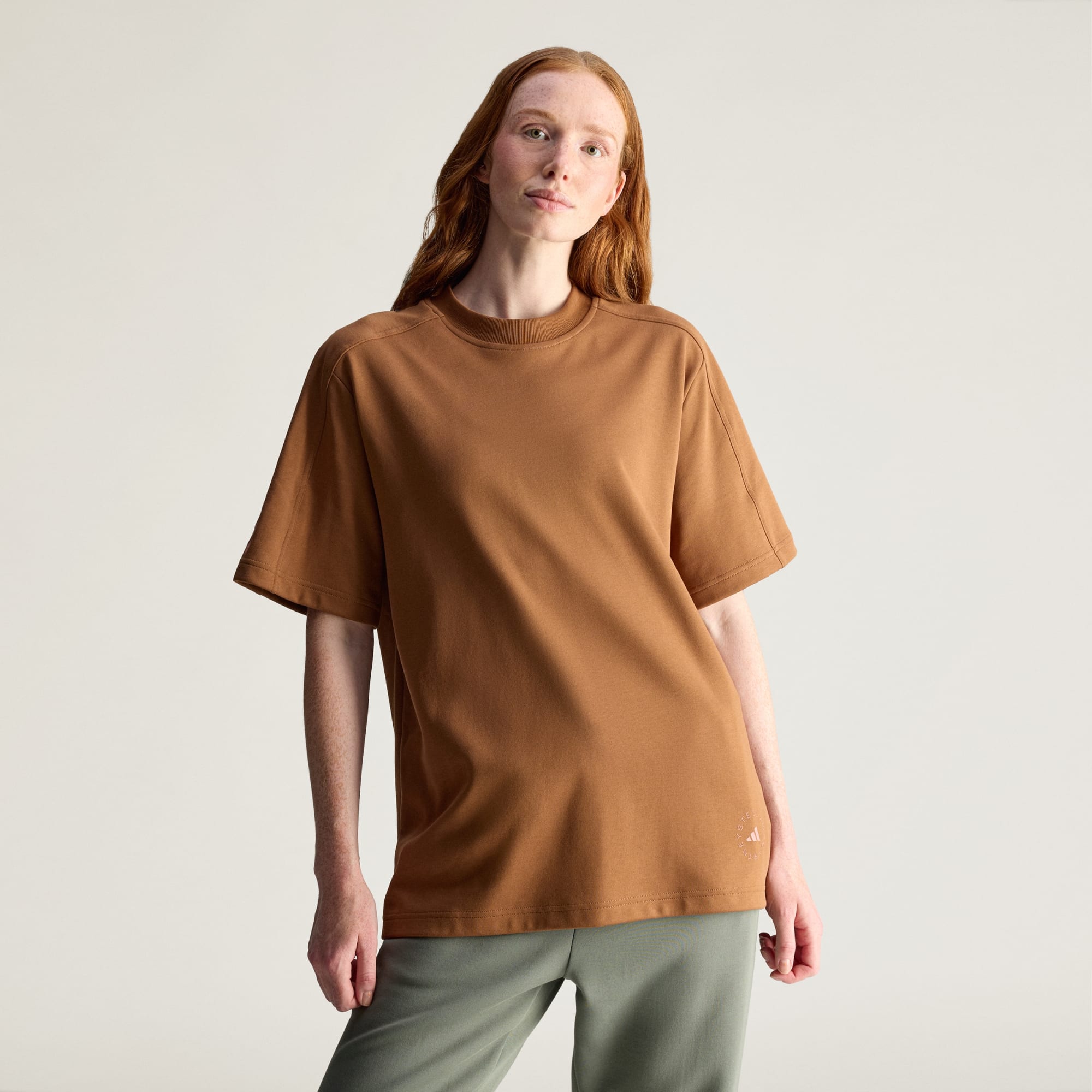 Bu adidas by Stella McCartney tişört, yumuşak organik pamuk karışımı kumaşı ile öne çıkar. Oversize kesimi ile hem rahatça hareket etmene hem de kat kat giyinmene olanak tanır. Ribana bisiklet yaka tasarımı ile klasik bir görünüm sunan model, alt kısmındaki logo ile öz güvenli bir stil sergiler. Bu ürün, en az %70 oranında geri dönüştürülmüş ve yenilenebilir malzeme içerir.