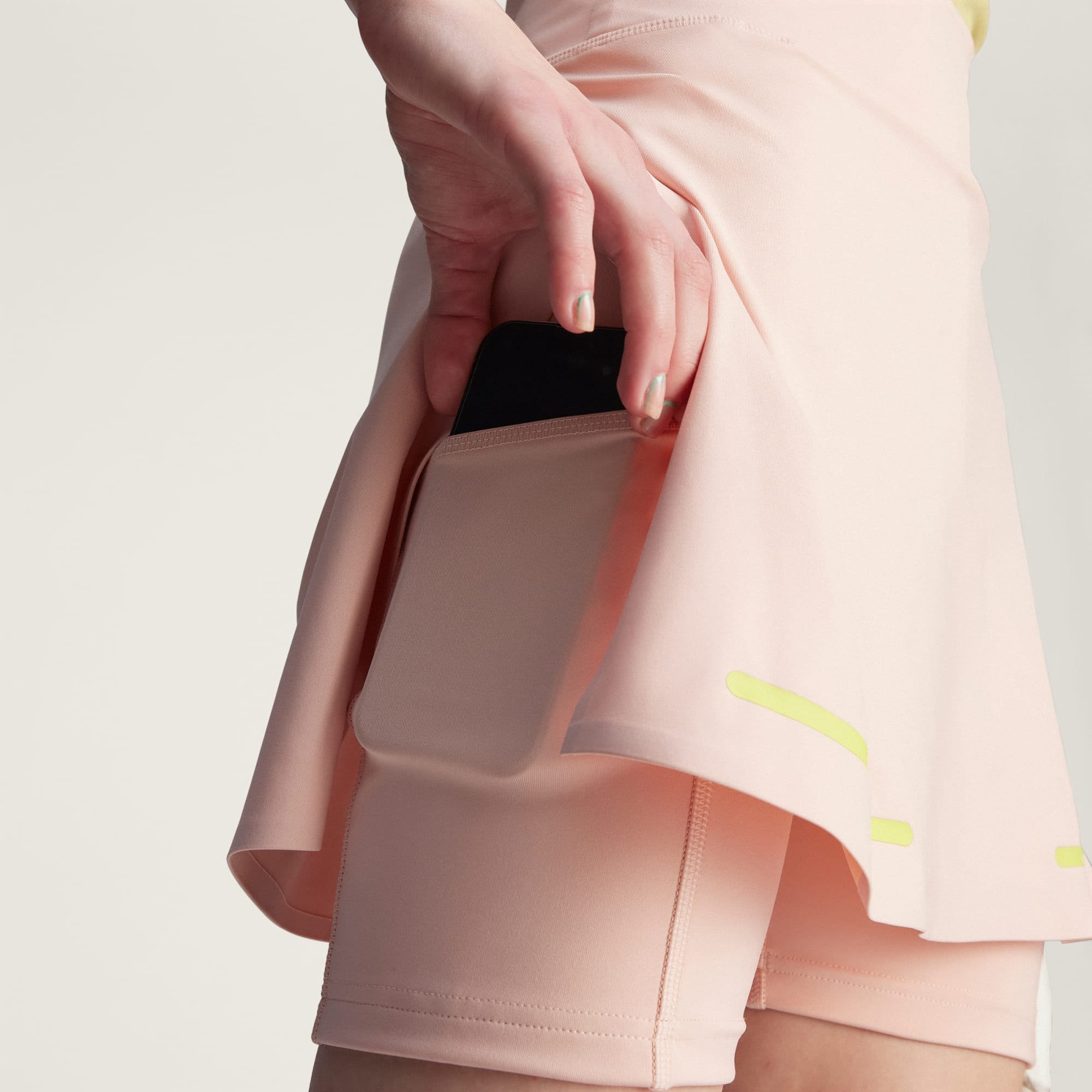 Önden etek gibi görünen skort, birleşik şortu ile ekstra koruma ve konfor sunar.