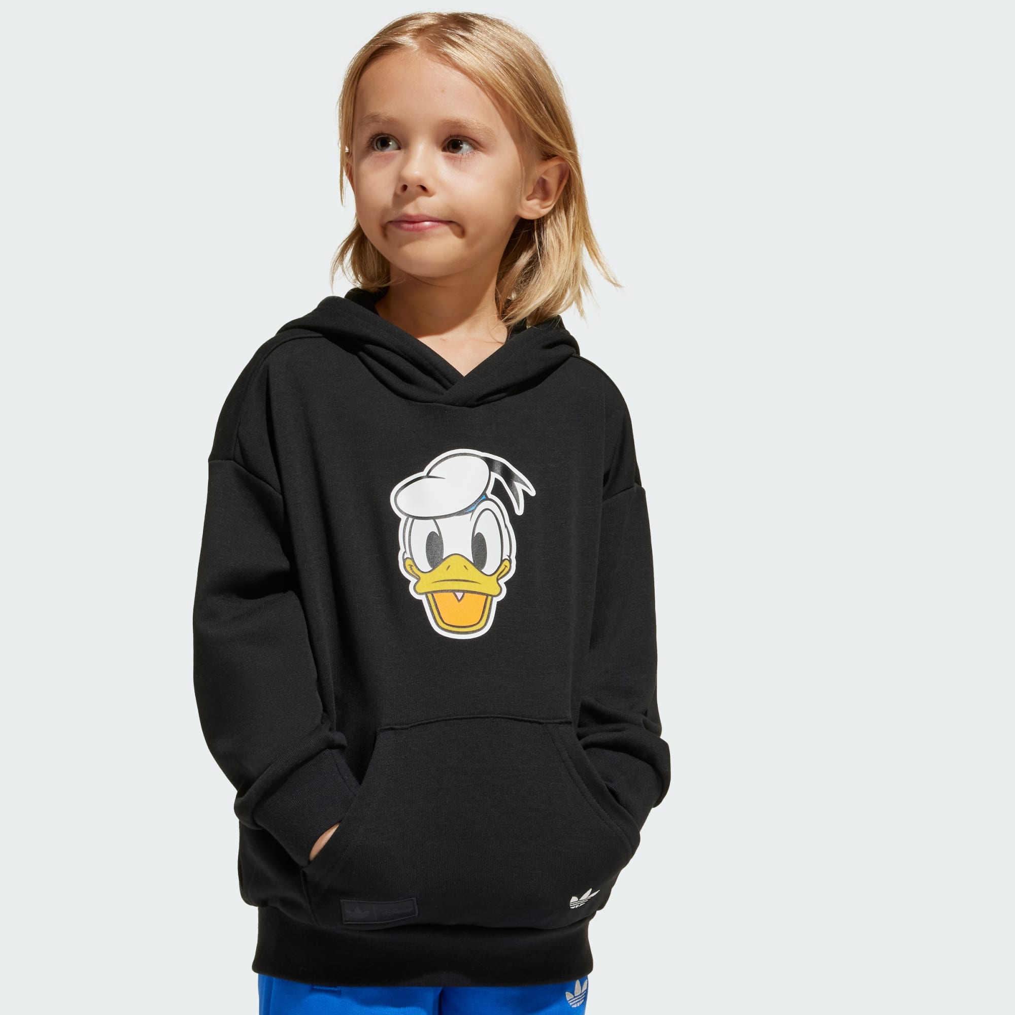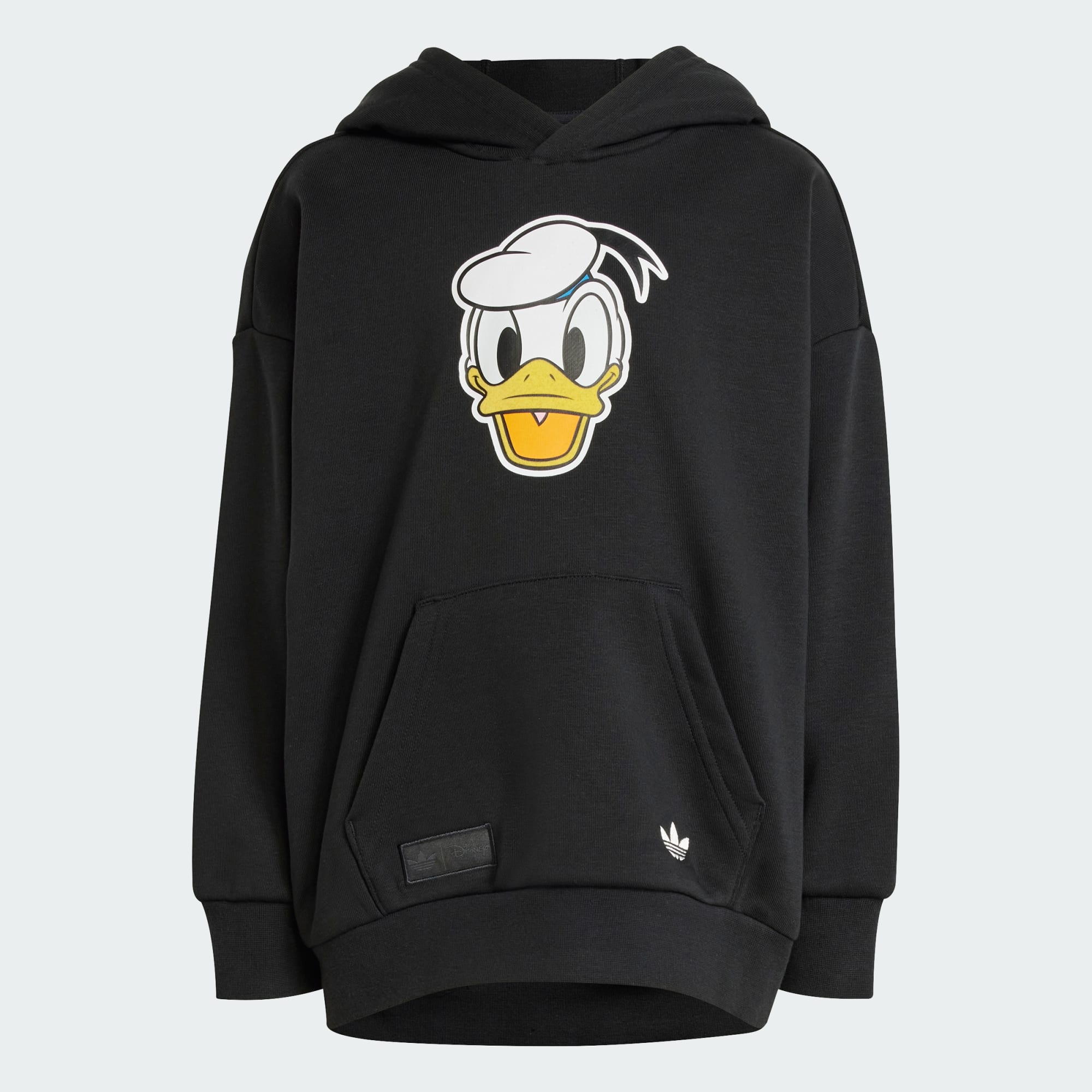 Çocuklara özel bu adidas kapüşonlu eşofman takımı, küçüklerin her maceraya hazır olmasını sağlar. Disney kahramanı Donald Duck'ın gülümseyen, mutlu yüzü modele eğlenceli bir görünüm kazandırır. Yumuşak Fransız havlu kumaşından üretilen bu rahat takım, gün boyu konfor sunar.