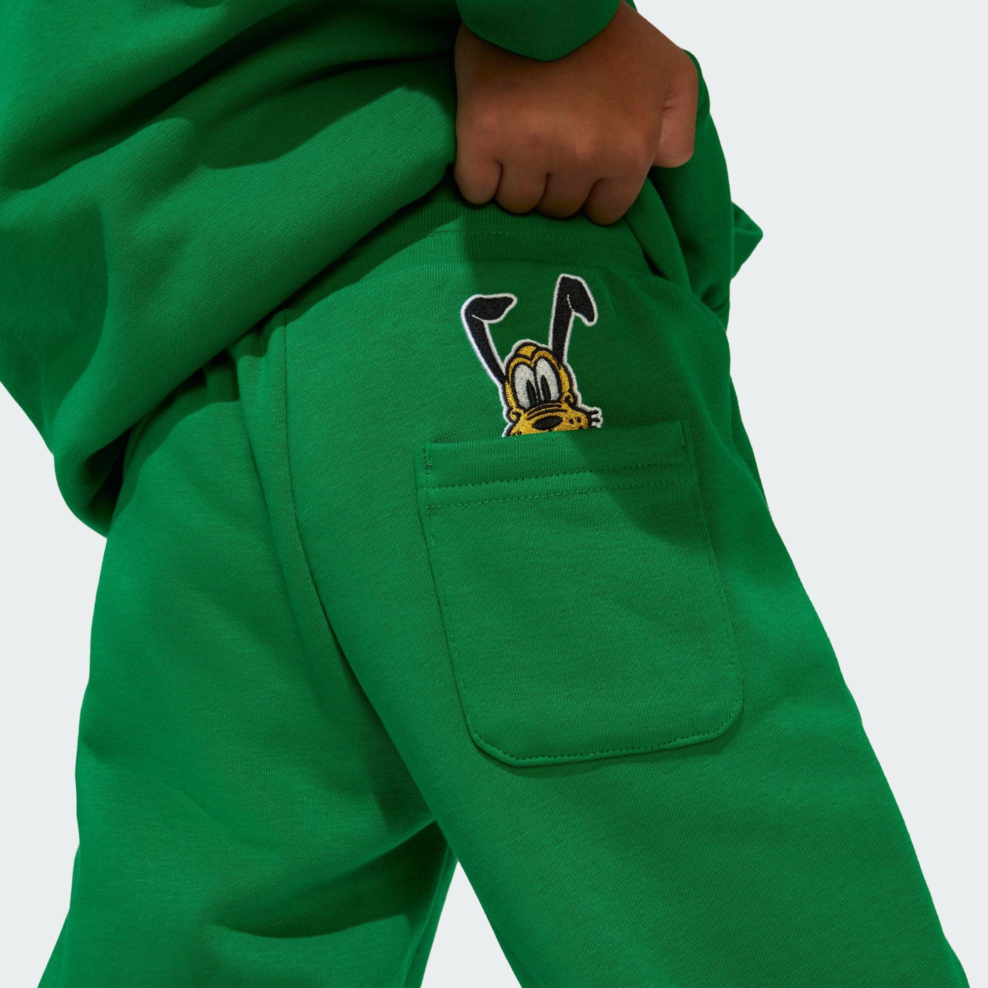 Çocuklara özel bu adidas kapüşonlu eşofman takımı, Disney kahramanı Pluto ile öne çıkar. Yumuşak ve dayanıklı pamuk ve polyester Fransız havlu kumaşından üretilen model, miniklerin her an konforlu ve maceraya hazır olmasını sağlar. Ekstra koruma sağlayan kapüşonlu tasarım, esnek ribana manşetleri ile kolların yukarı kaymasını önler. Eşofman altı ise bağcıklı ve esnek bel bandı ile vücuda güvenle oturur.