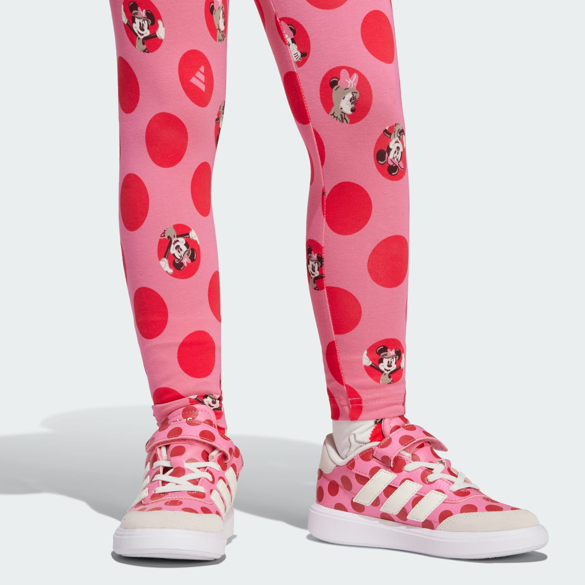 Disney kahramanı Minnie Mouse, puantiyeleriyle ünlüdür. Çocuklara özel bu yumuşak ve esnek adidas takım, renkli puantiyeli tasarımı ile eğlenceyi ve arkadaşlığı kutlar. Bol kesim sweatshirt ve sportif tayttan oluşan model, keşif dolu maceralar için idealdir.