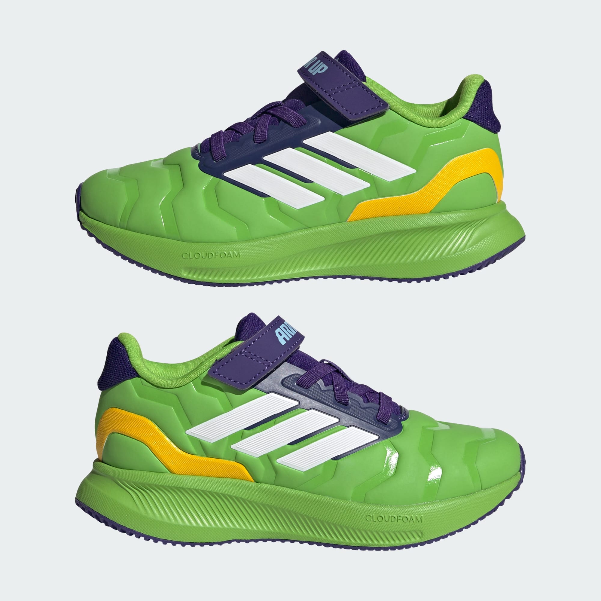 Ayakkabılarını her giydiğinde süper kahramana dönüşen çocuklar için, adidas Runfalcon 5 ayakkabı günü kurtarmaya hazır. Marvel kahramanı Hulk’tan ilham alan bu ayakkabı, Hulk renkleri ve grafikleri ile öne çıkar. Orta tabanı ile tüm aksiyonlarda hafif yastıklama sunan model, cırt cırtlı bantlar sayesinde kolayca giyilip çıkarılabilir.