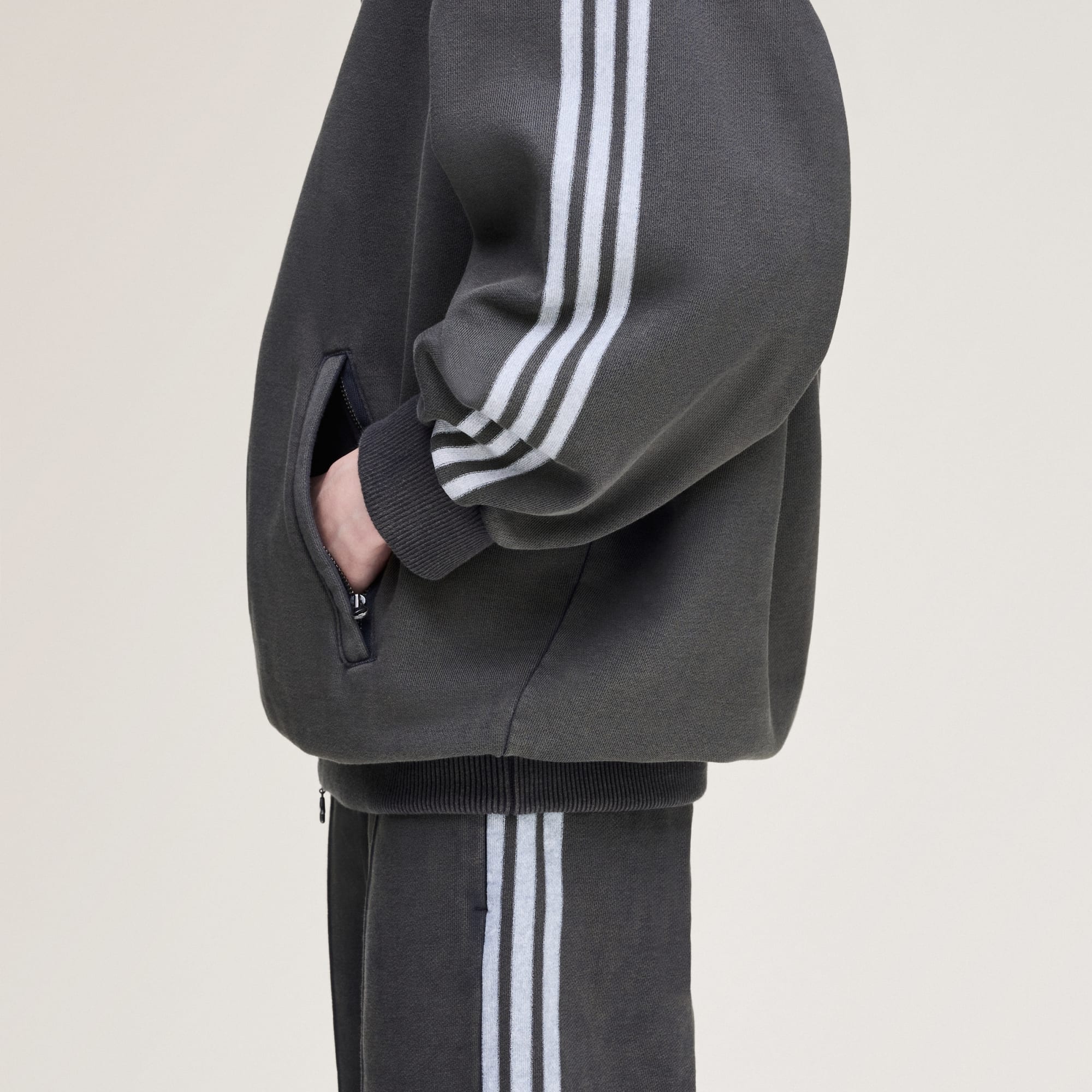 Yumuşak havlu kumaştan üretilen, bol kesim eşofman üstü.
