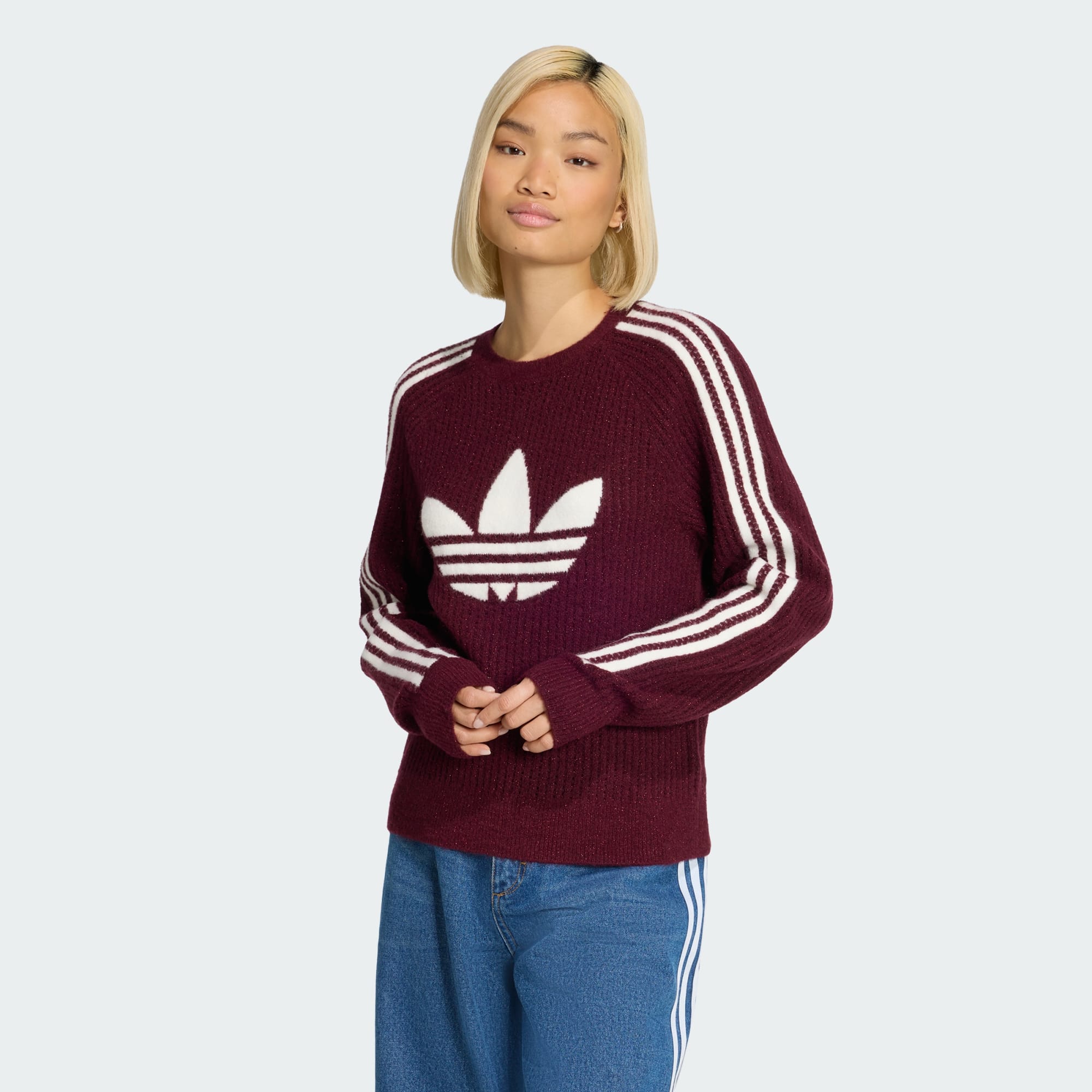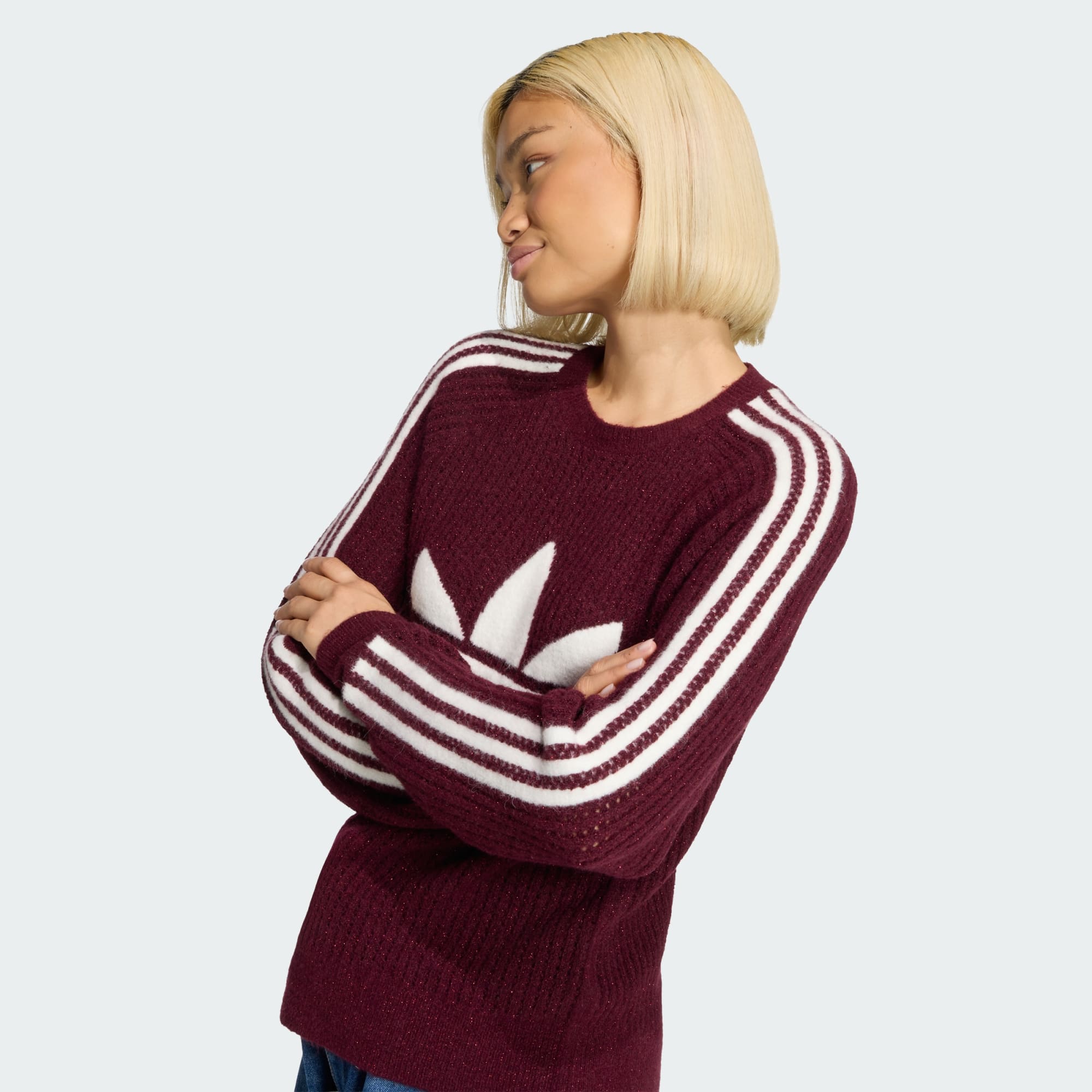 İmza stilini ve tatil neşesini harmanlayan dikişsiz tasarıma sahip adidas Originals Örme Kumaş Crew sweatshirt ile kutlama havasına gir. Bu koleksiyon, Adicolor serimizin devamı niteliğinde ve bu serideki parçalarımızla aynı kumaşlara yeni vurgular katıyor.