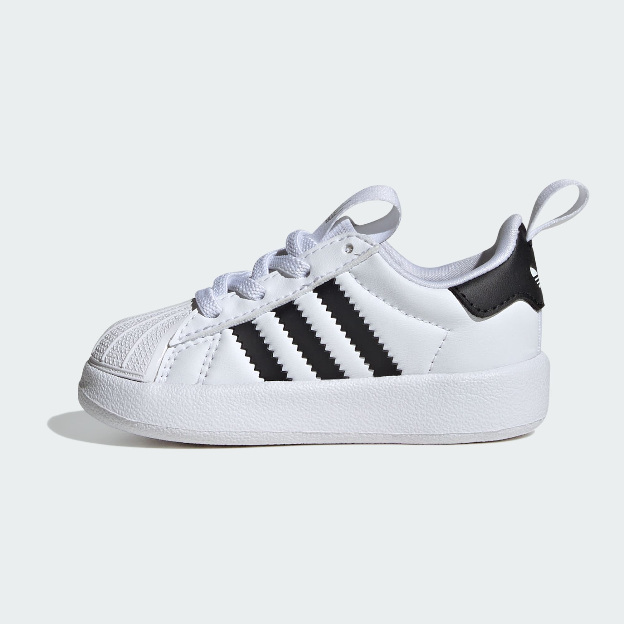 Bebeklere özel adidas Superstar 360 Ayakkabı ile geleceğin kaşifleri kendi yolunda emin adımlarla ilerliyor. Pürüzsüz ve yumuşak malzemelerle tasarlanan ve ikonik kauçuk burun yapısı ile tamamlanan model, ekstra esnek bilek kısmı ve bağcıklarıyla kolayca giyilip çıkarılabilir. Adifom birleşik tabanı, süper hafif ve esnek yapısı ile minik ayakları mükemmel bir şekilde sarar.