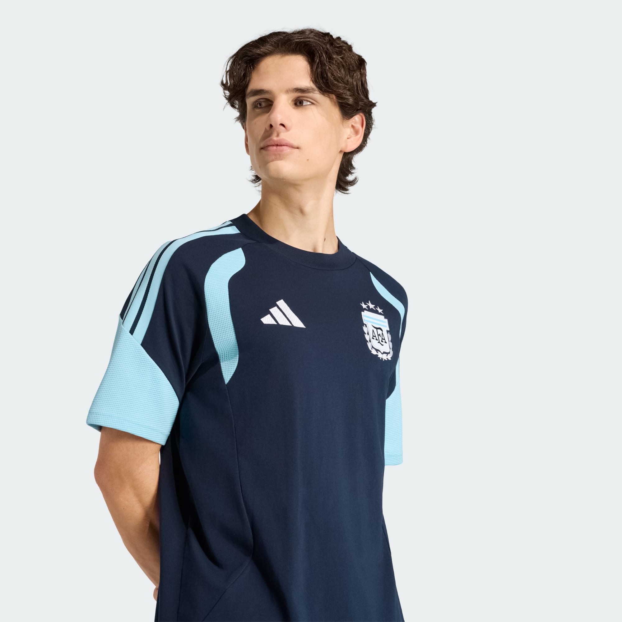 İddialı bir stil için ikonik adidas tasarımına sahip Argentina tişörtü.