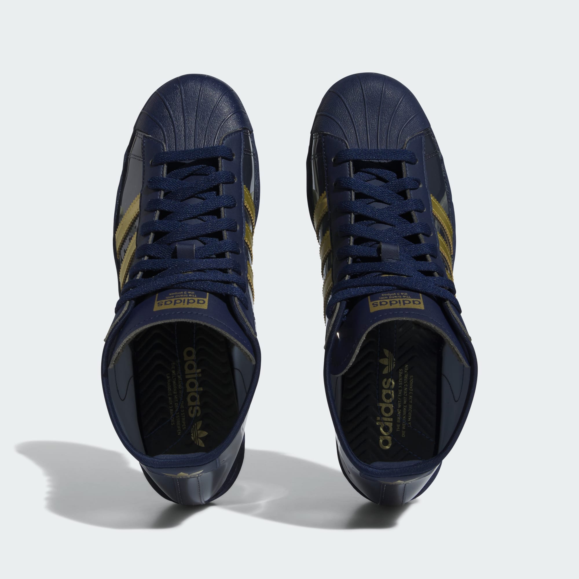 Blondey McCoy'un 3 bant stili basketbol klasiklerine olan sevgisini yansıtan Blondey Pro Model ADV, onun stil sahibi tasarım vizyonunu ve özgün malzemeleri ikonik silüete taşıyor. Önceki tasarımlarında ön plana çıkan yarı şeffaf TPU malzemelerin karışımıyla tasarlanan Blondey Pro Model, tamamen TPU üst yüzeye, sentetik 3 Bant detayına ve Pro Model'in ikonik kauçuk burun yapısına sahiptir. Tasarım mirasını devam ettiren Blondey Pro Model, altın rengi marka detayları ve özel Blondey iç taban tasarımının yanı sıra modern kaykay stiline özel dayanıklılık ve geliştirmeler sunar.